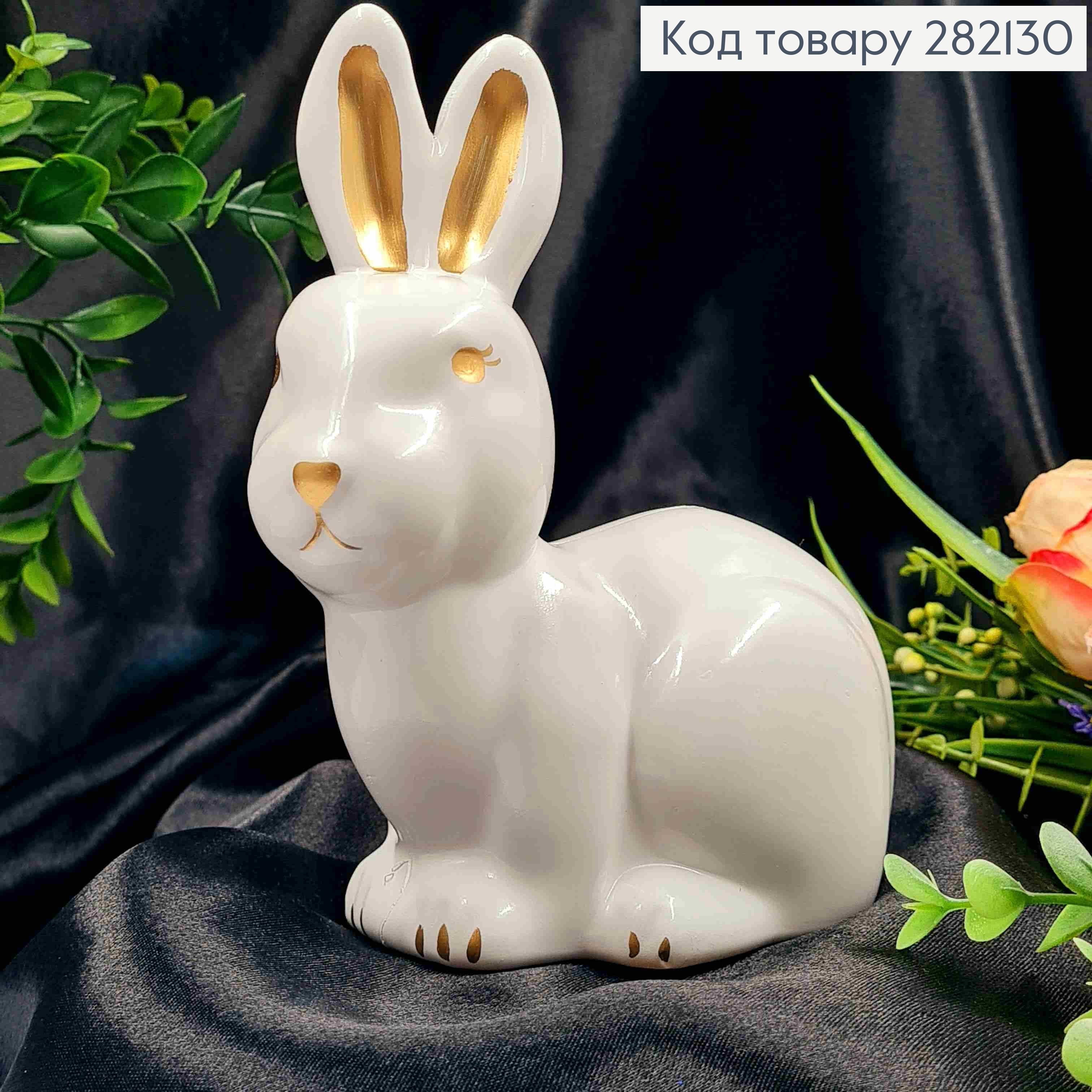 Пасхальная фигурка "ЗАЯЦ с ЯИЧКОМ", (пластик), БЕЛЫЙ с Золотыми ушами, 7*5,5см 282162 фото