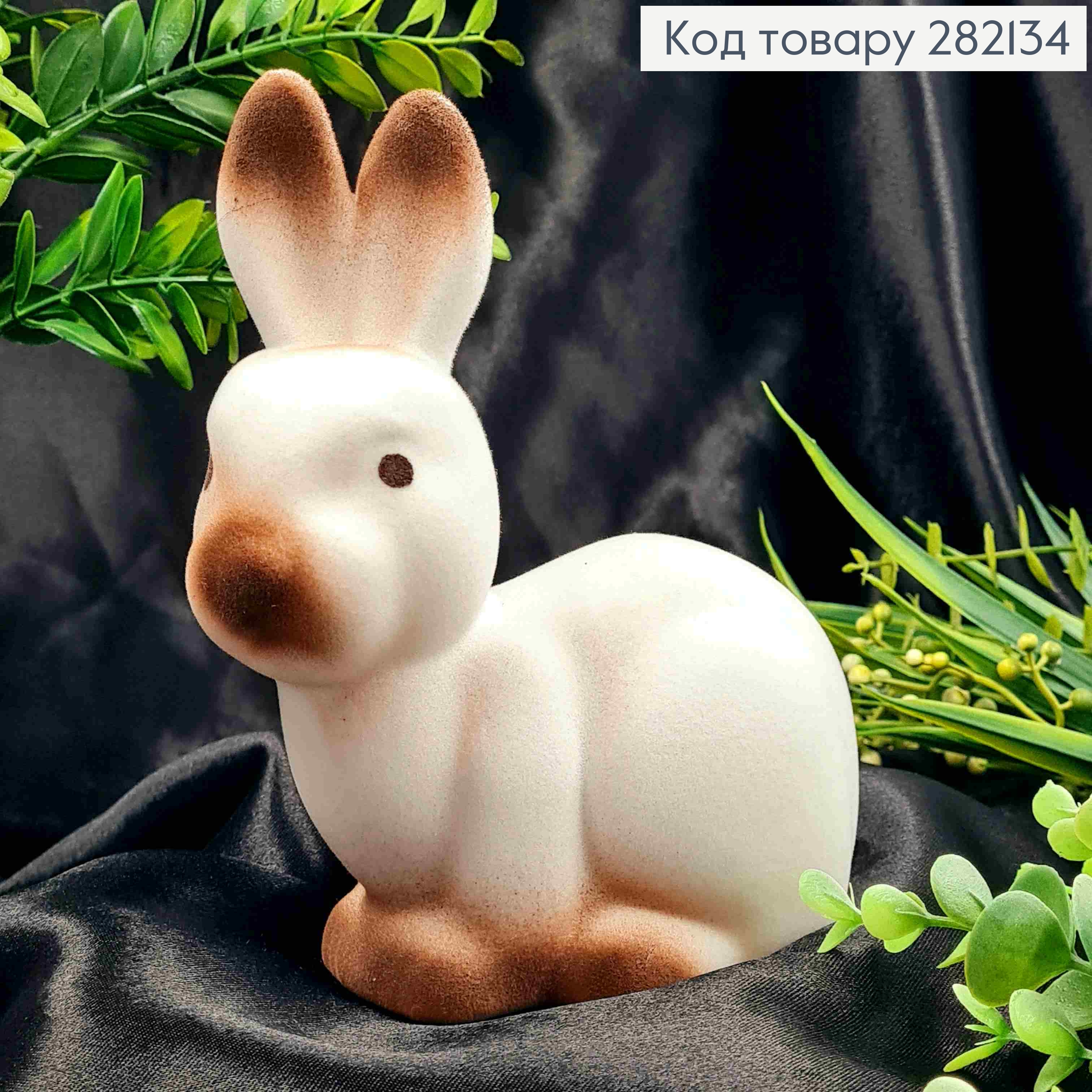 Пасхальная фигурка "ЗАЯЦ с ЯИЧКОМ", (пластик, бархат), БЕЛОГО цвета, 7*5,5см 282181 фото