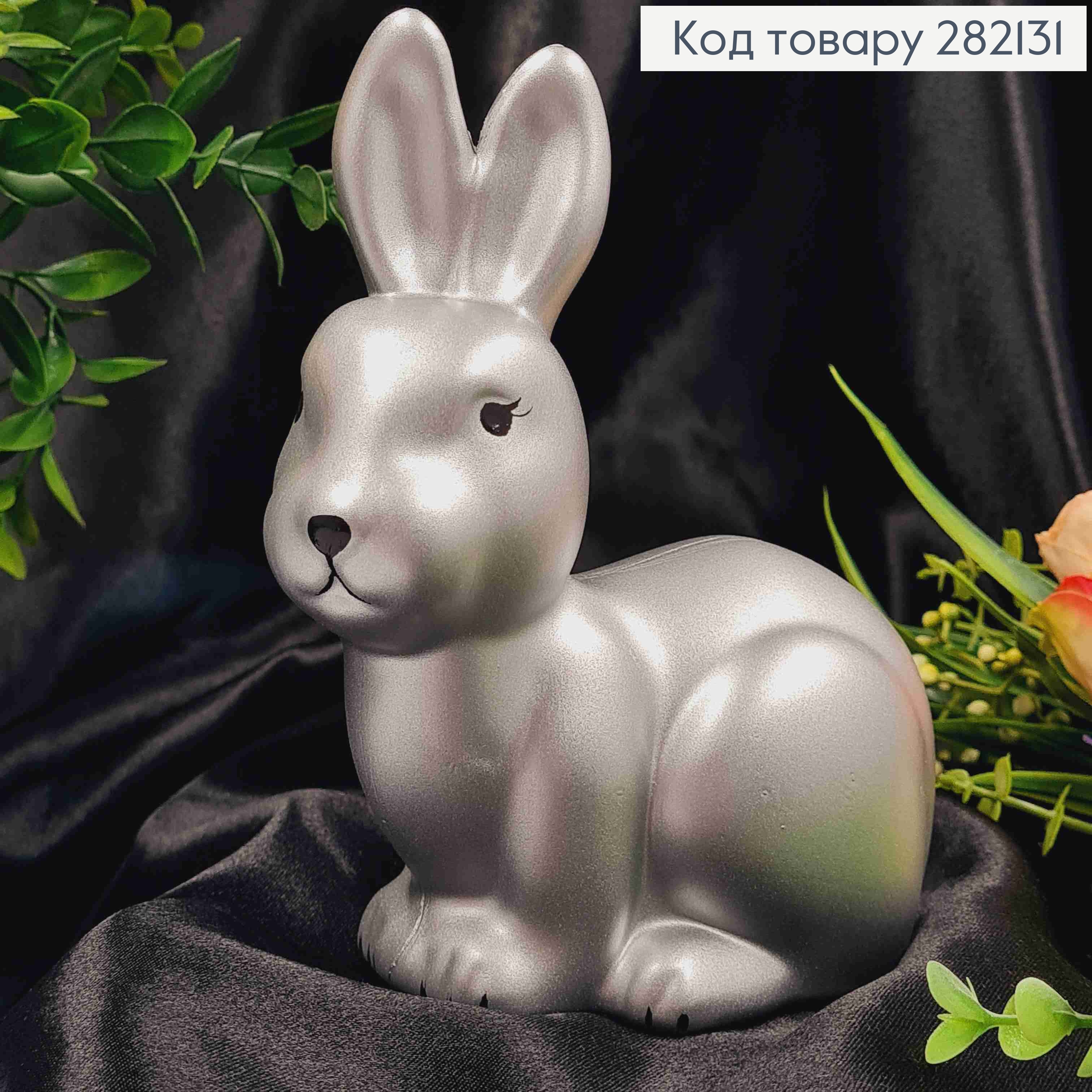 Пасхальная фигурка ЗАЯЦ, пластик, СЕРЕБРЯНОГО цвета, 15,5*11,5 см