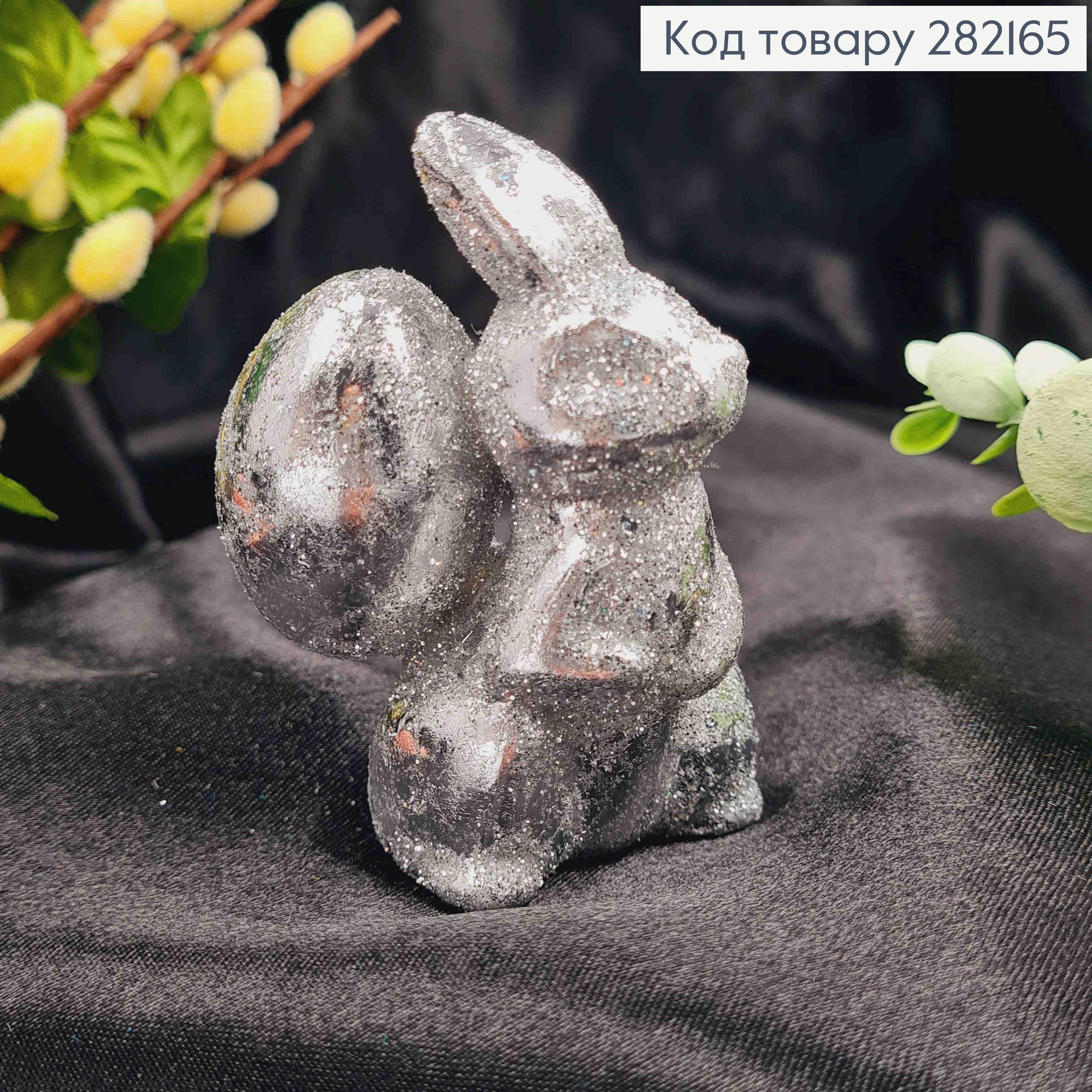Пасхальная фигурка "ЗАЯЦ с ЯИЧКОМ", (пластик), СЕРЕБРЯНОГО цвета, 7*5,5см 282163 фото