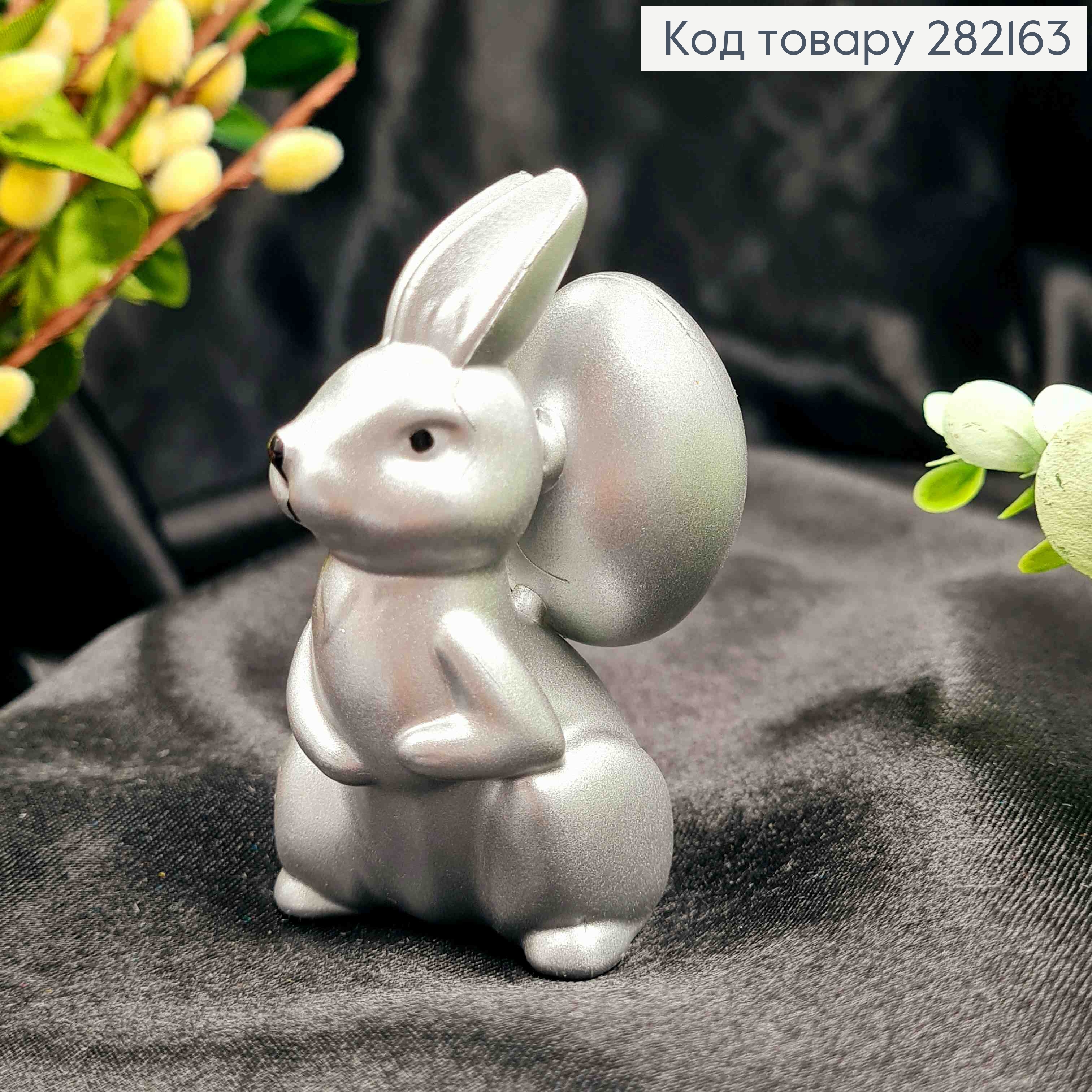 Пасхальная фигурка "ЗАЯЦ с ЯИЧКОМ", (пластик), СЕРЕБРЯНЫЙ с Блеском, 7*5,5см 282165 фото