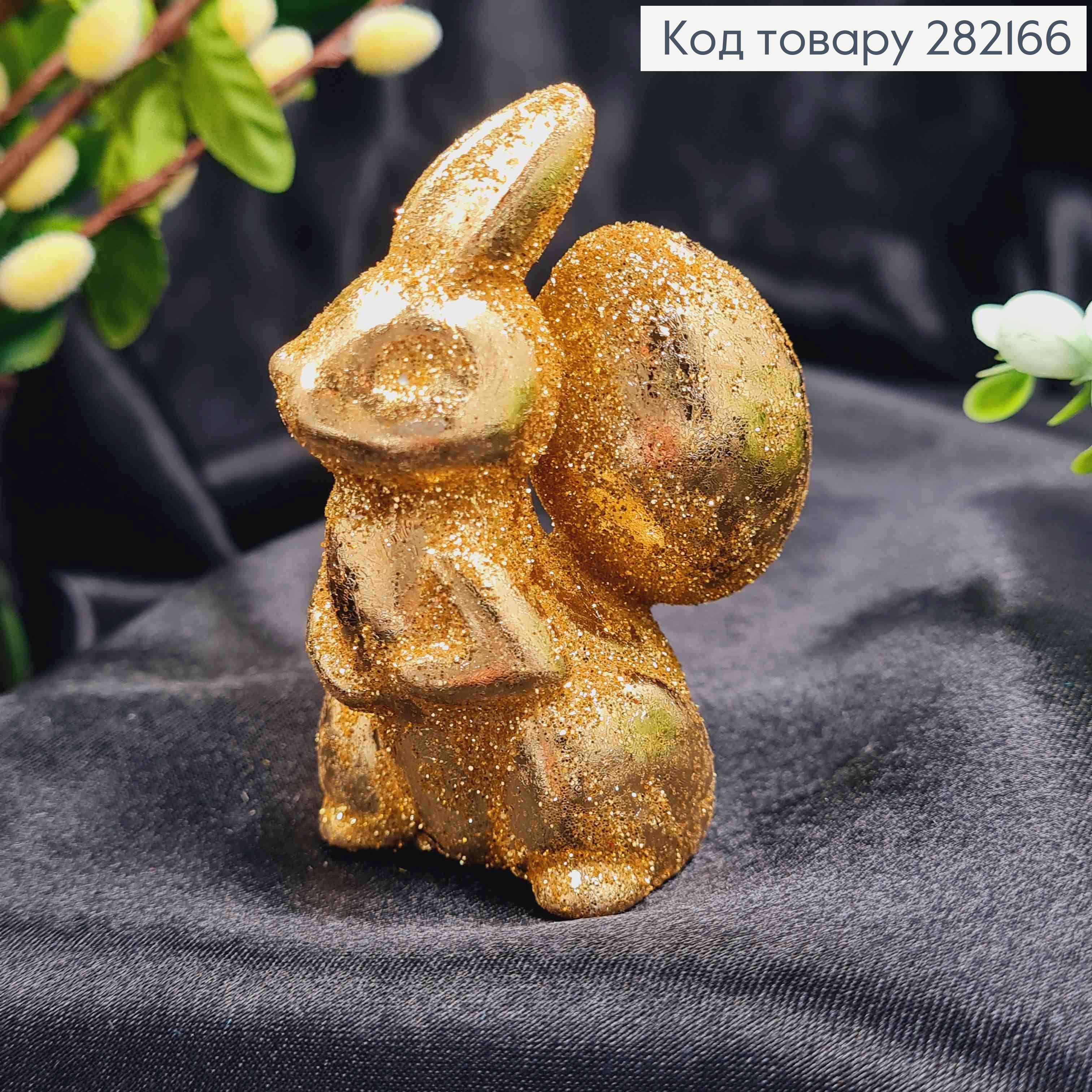 Пасхальная фигурка "ЗАЯЦ с ЯИЧКОМ", (пластик), ЗОЛОТОГО цвета, 7*5,5см 282164 фото