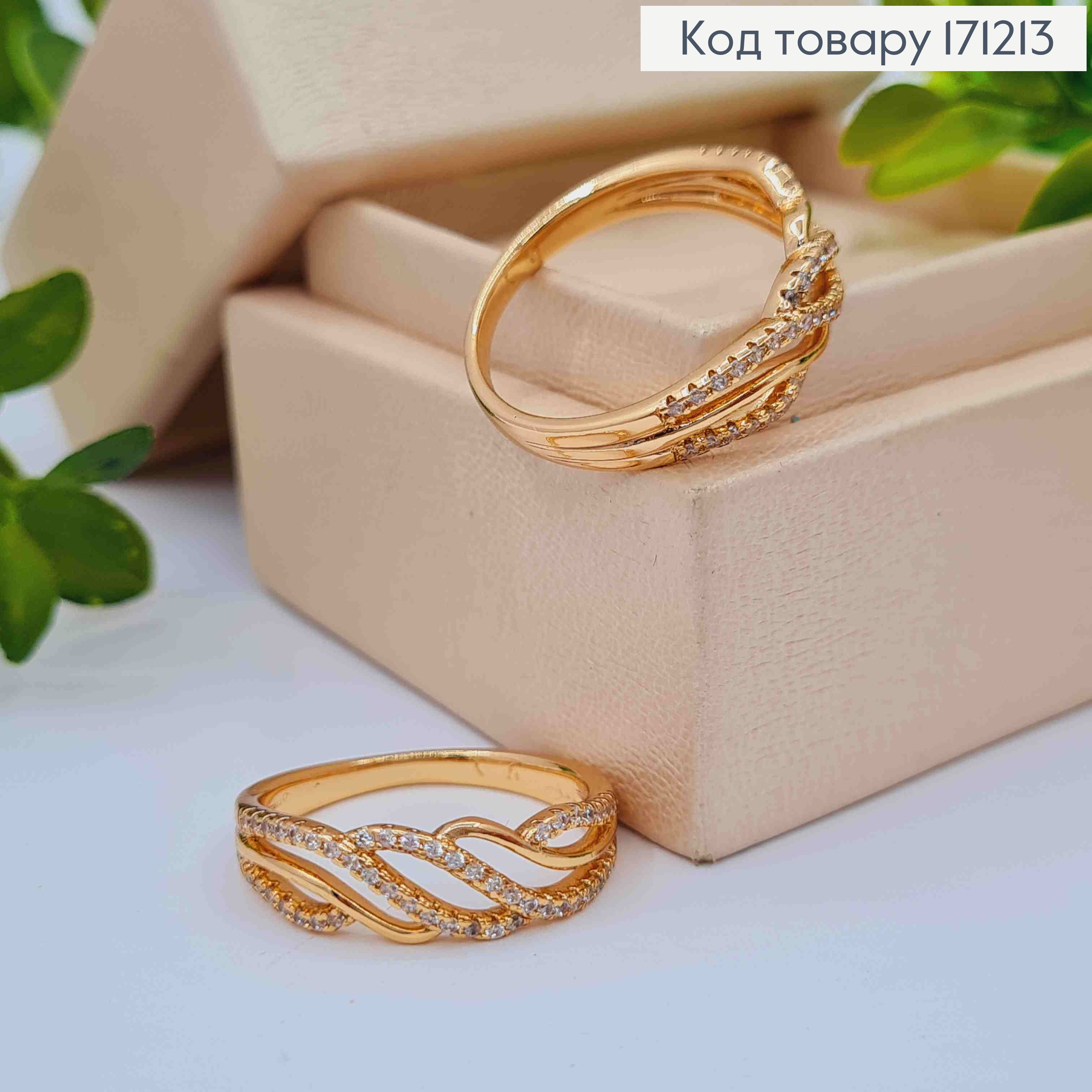 Кольцо "Молния" с Блестящими камнями, Xuping 18К 171259 фото