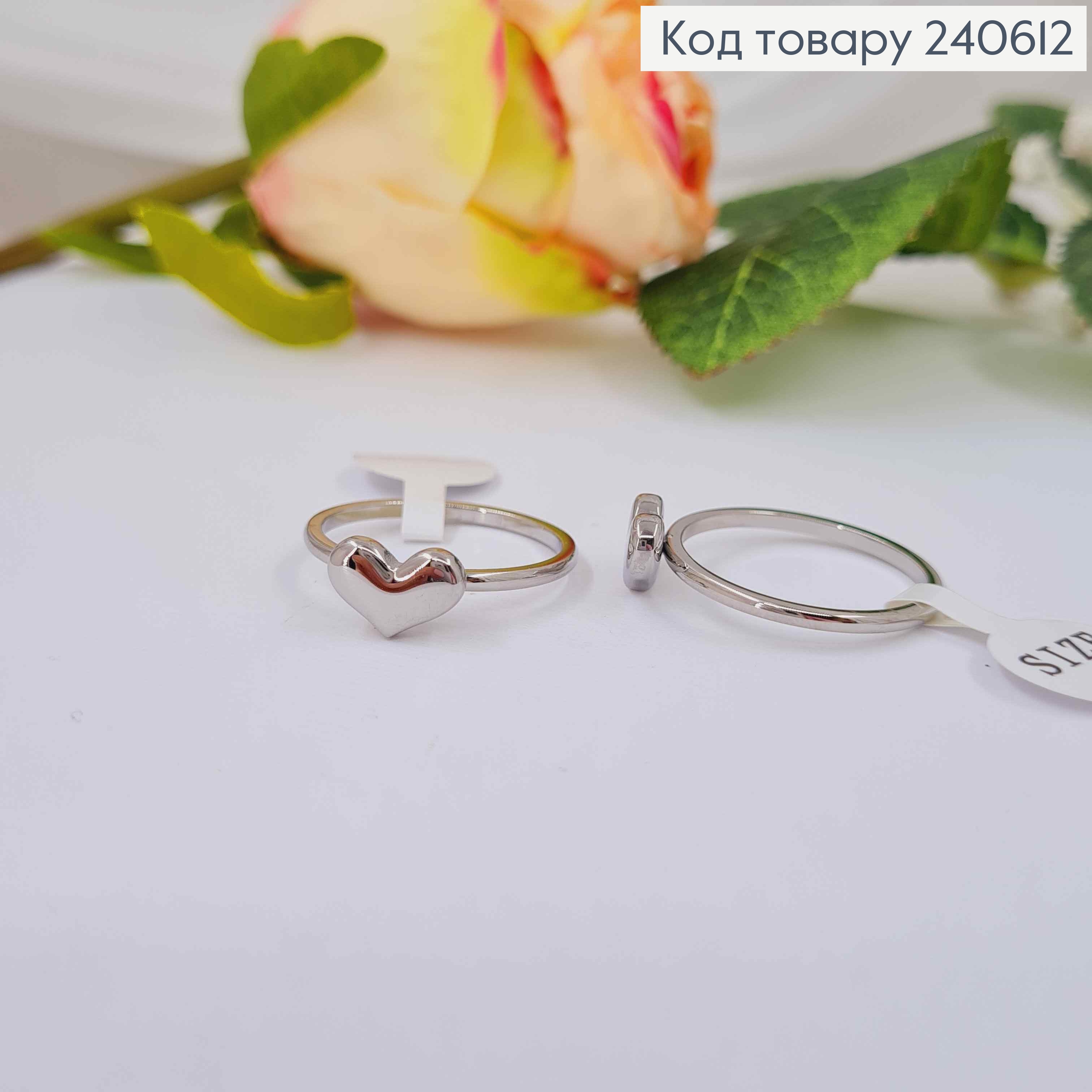 Кольцо серебряного цвета, С объемным сердечком, сталь Stainless Steel