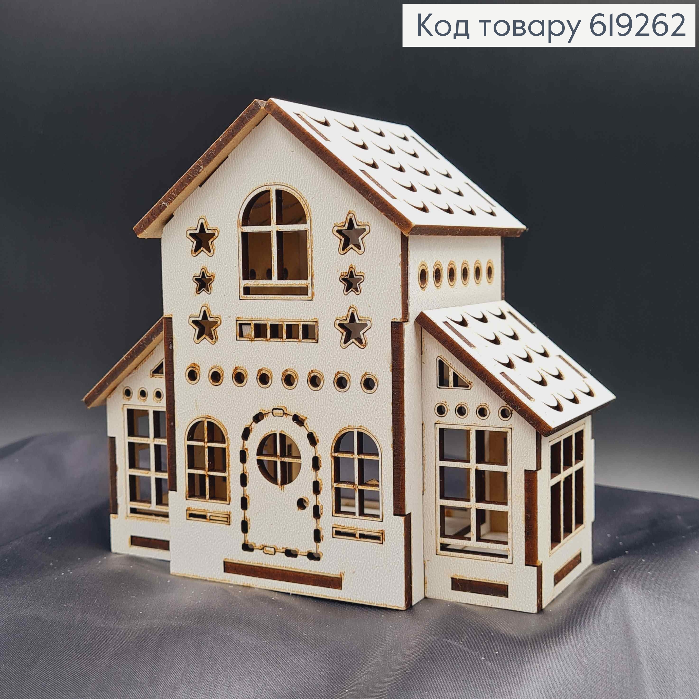 Подсвечник, деревянный белый домик со звездочками, 13*14,5*8см, Украина.