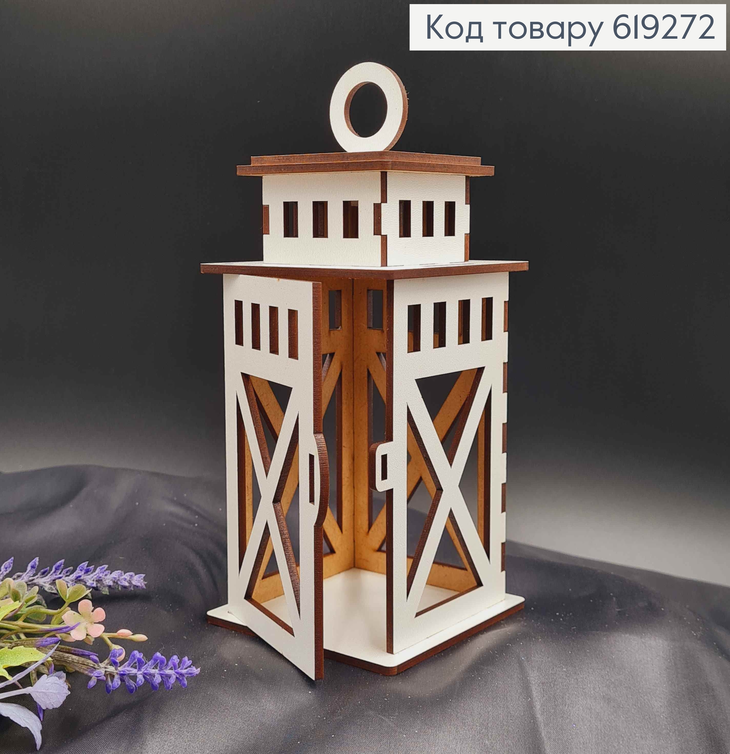 Подсвечник деревянный белый Фонарик, 19*8,3см, Украина