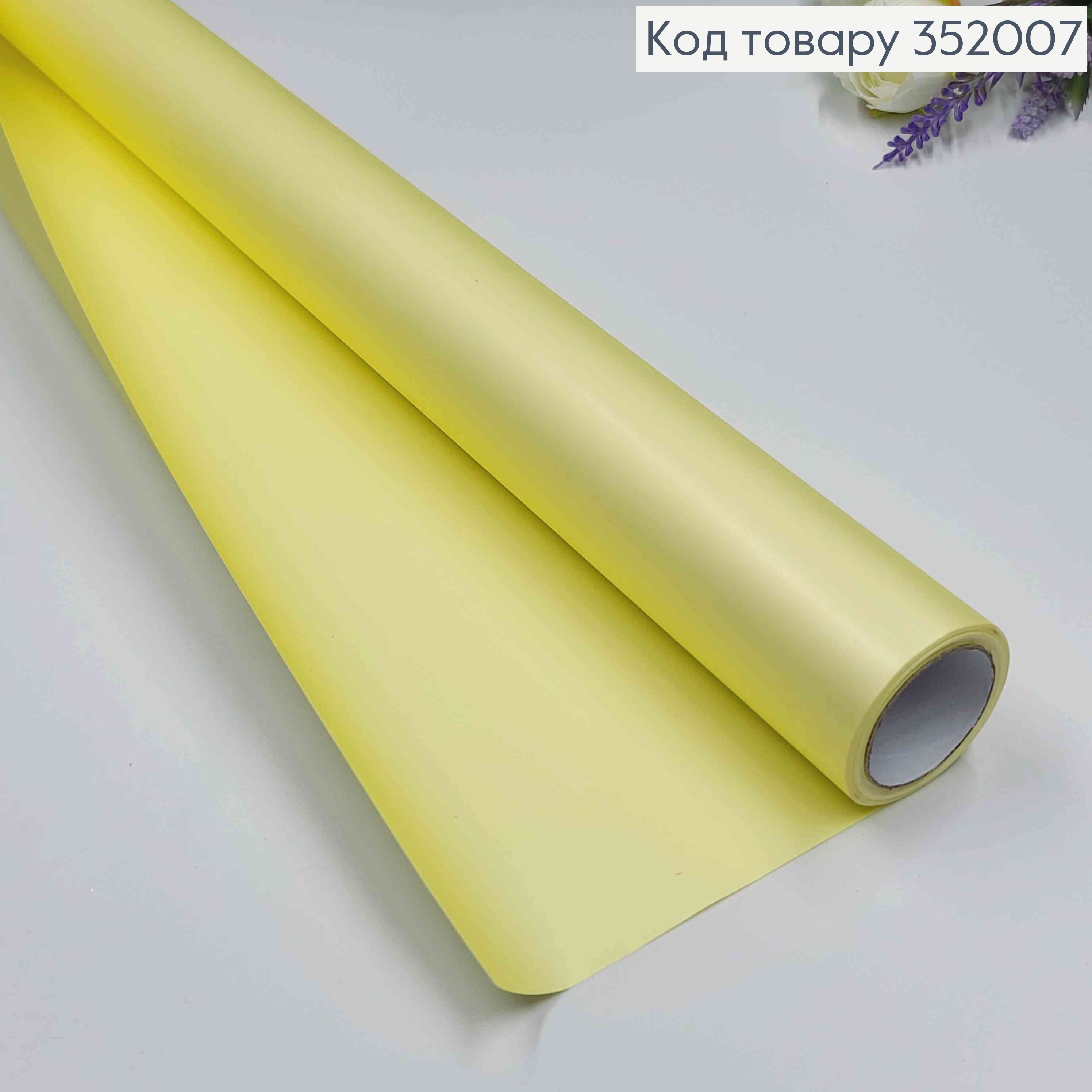 Пленка двухсторонняя "Бархат перламутр" матовая, цвет ЛИМОННЫЙ, рулон 68см*8м,плотная 70мкр