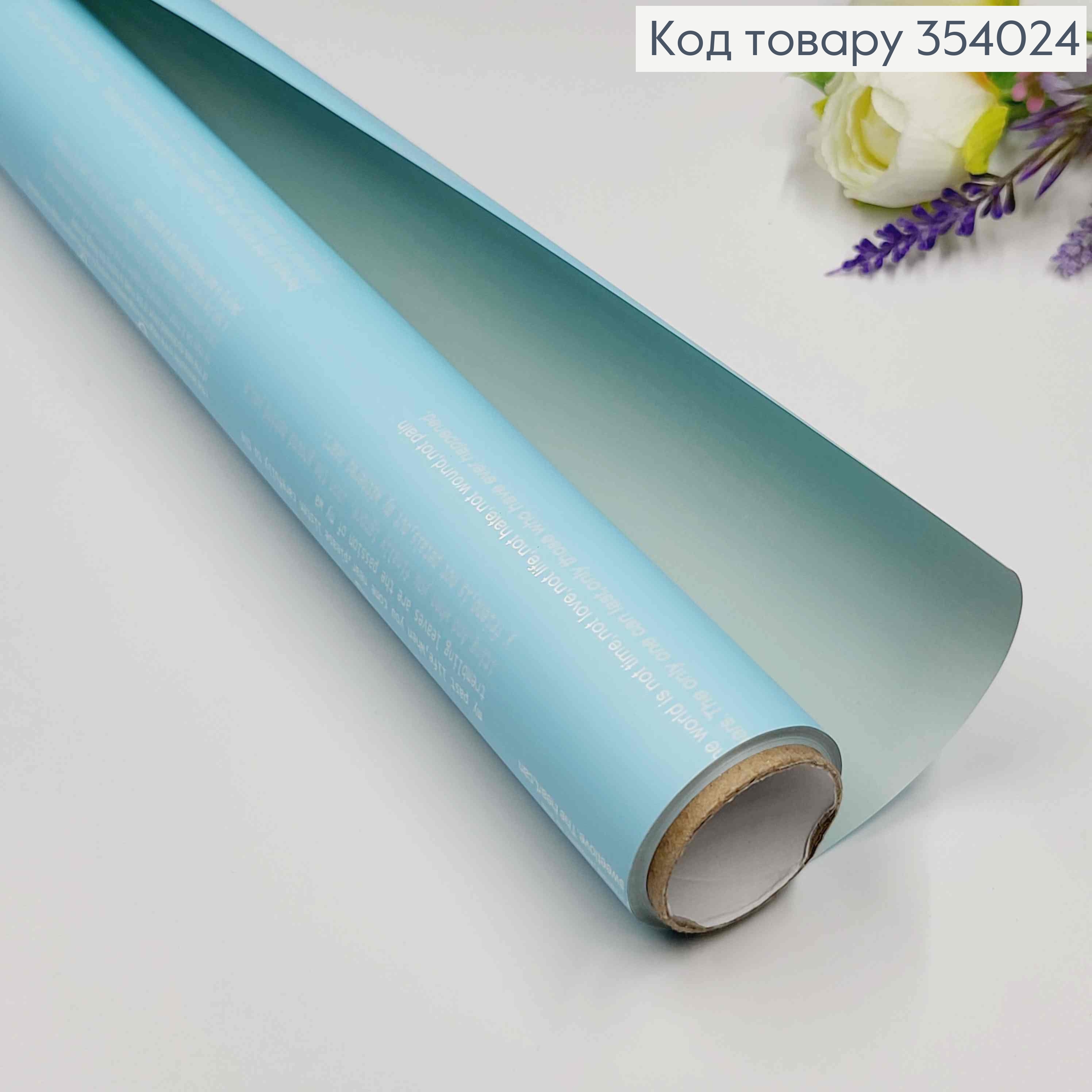 Пленка двухсторонняя, "Love", цвет ГОЛУБЕЖНАЯ, с белыми надписями, рулон 58см*8,5 ярда.