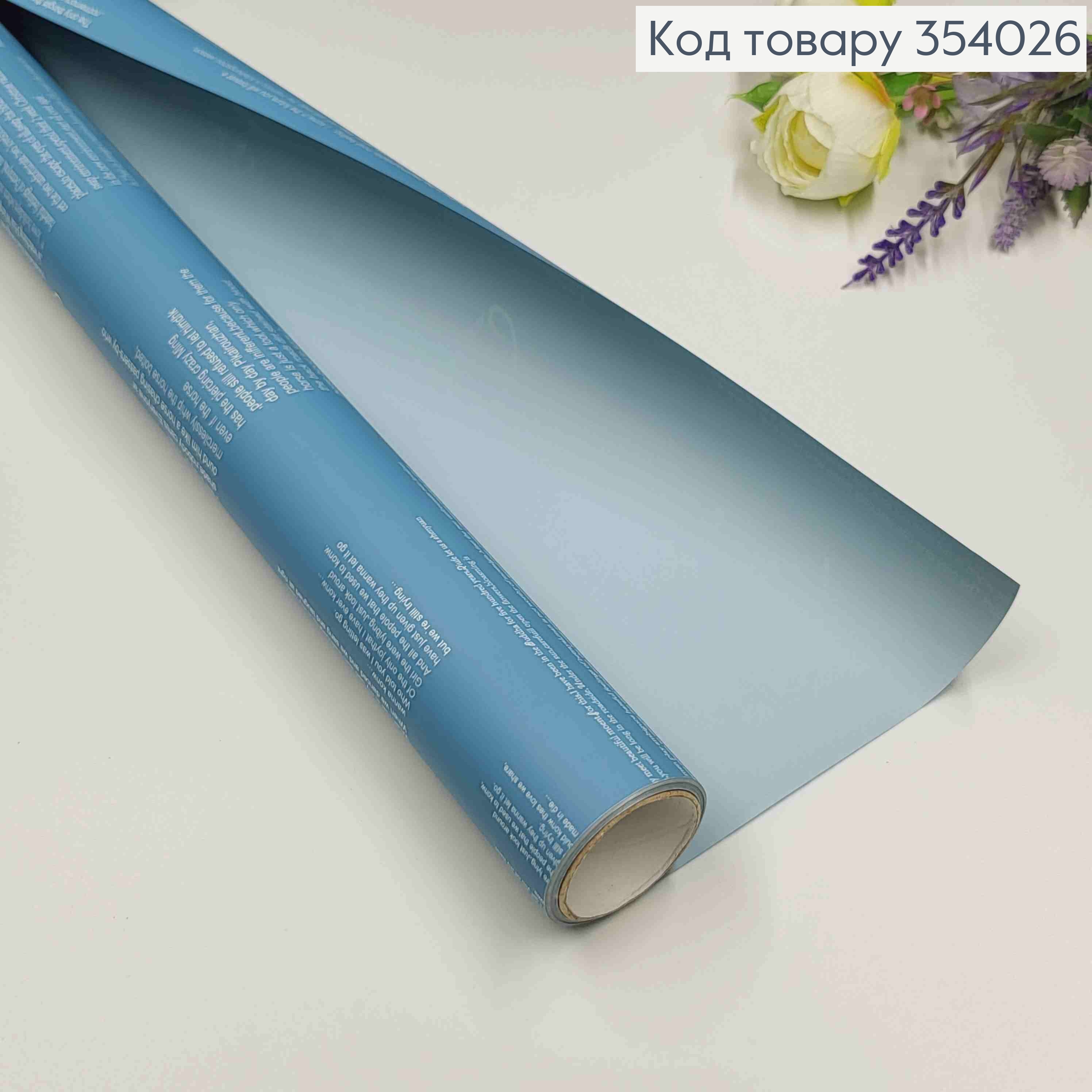 Пленка двухсторонняя, "Love", цвет СВЕТ-СИНЯЯ, с белыми надписями, рулон 58см*8,5 ярда.