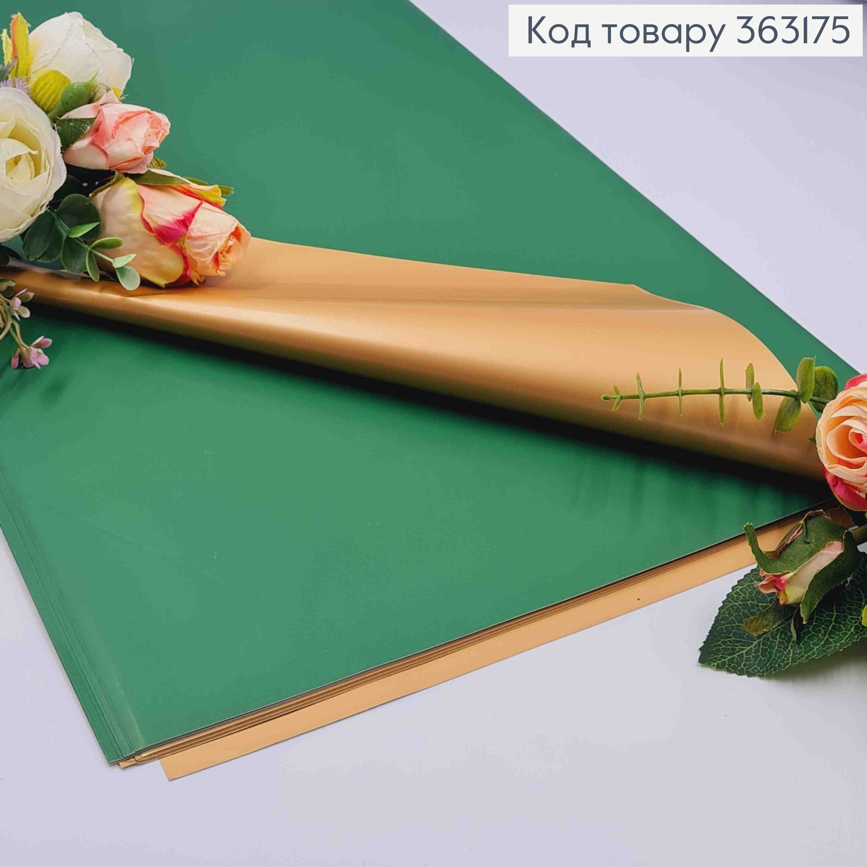 Плівка матова-двостороння ЗЕЛЕНАЯ+ЗОЛОТО, в листах 58*58см, 60мкр