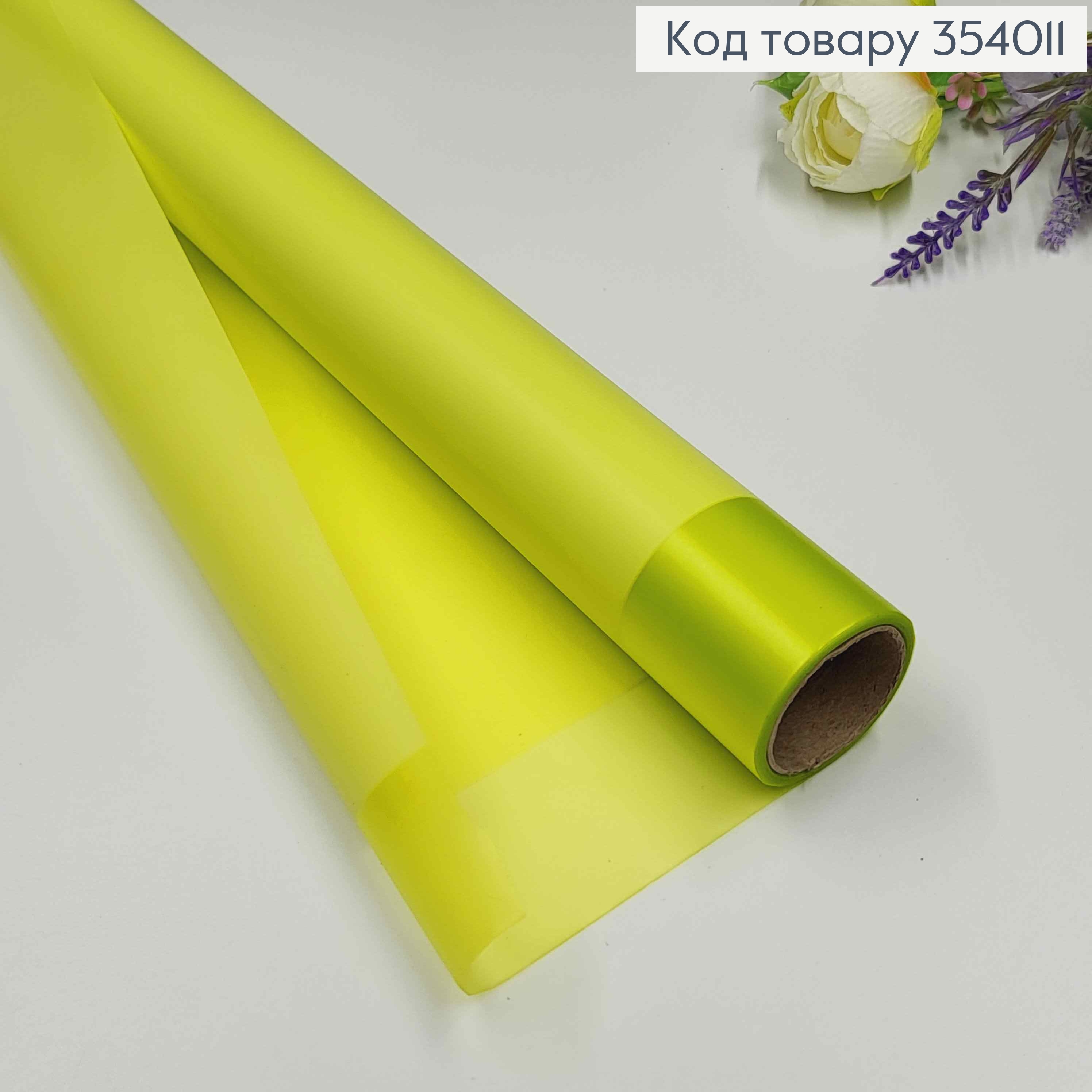 Пленка матовая, с широкой каймой, цвет ЖЕЛТО-ЗЕЛЕНЫЙ, рулон 60см*8,5 ярда.