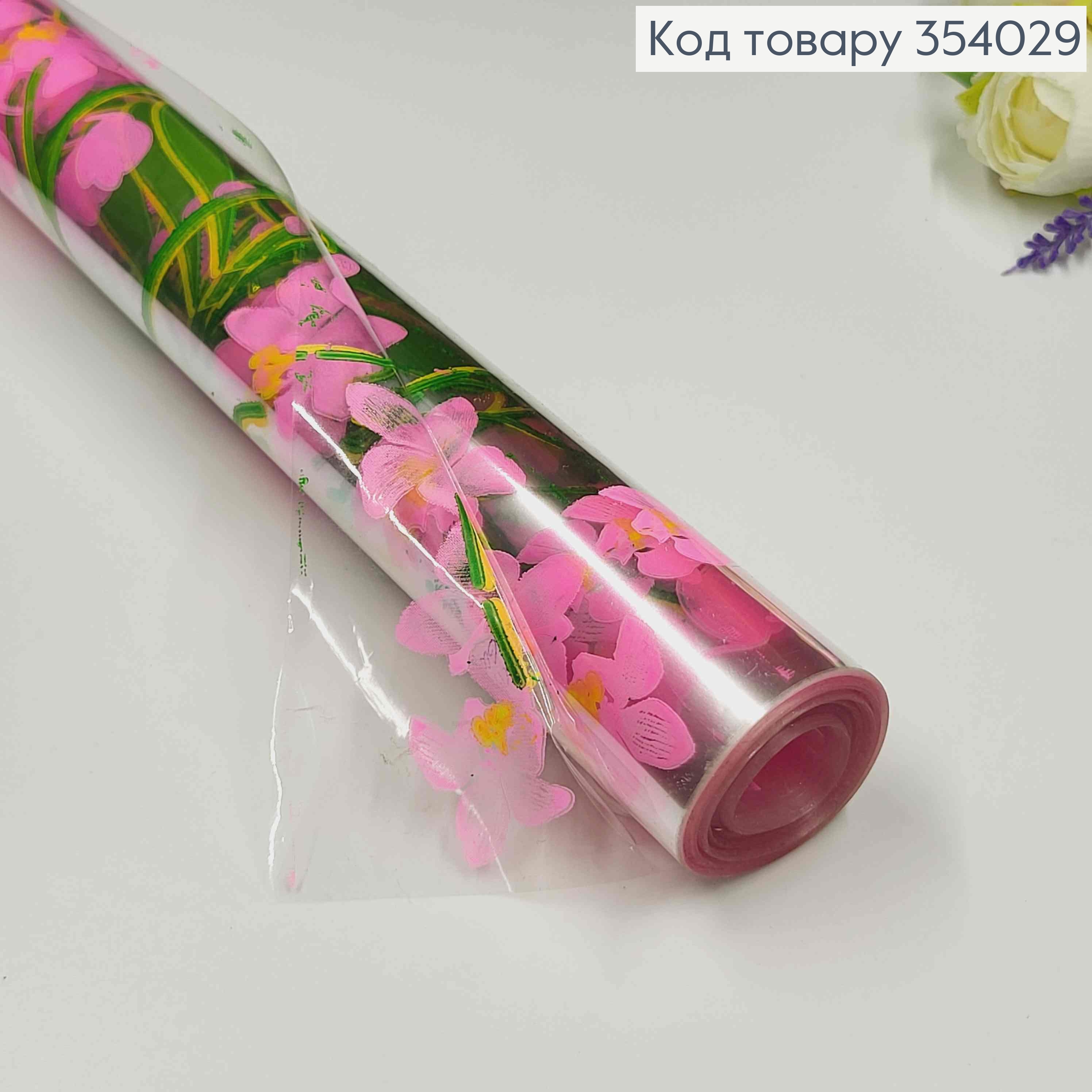 Пленка прозрачная, с принтом, розовые цветы, рулон ширина 60см, вес 600грамм.