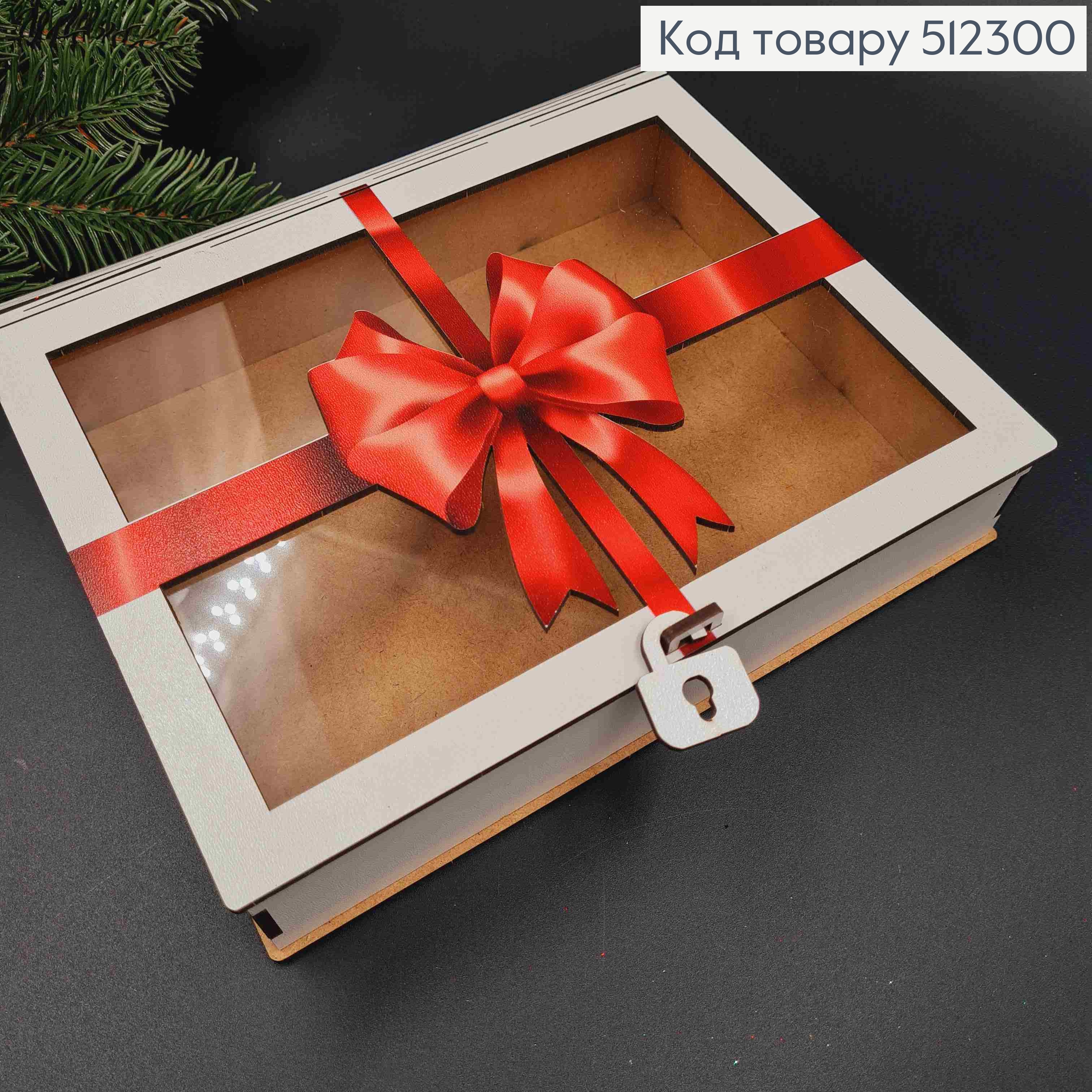Подарочная деревянная коробка с принтом "Красный Бант", Квадратная 20*20см, высота 6см. 512301 фото