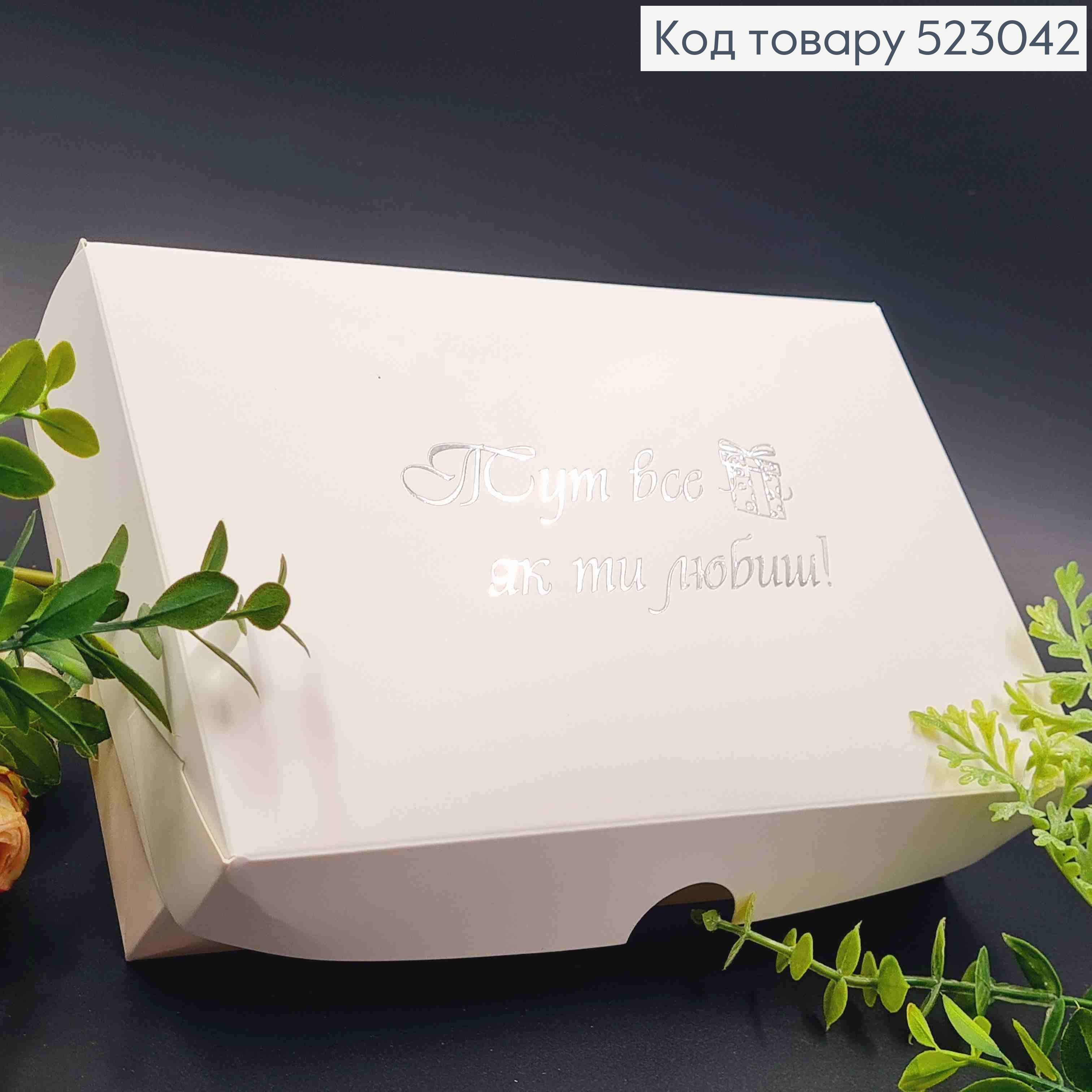 Подарочная складная коробка, Белого цвета с Серебряным тиснением "Здесь все как ты любишь", 22,5*14,5*6см