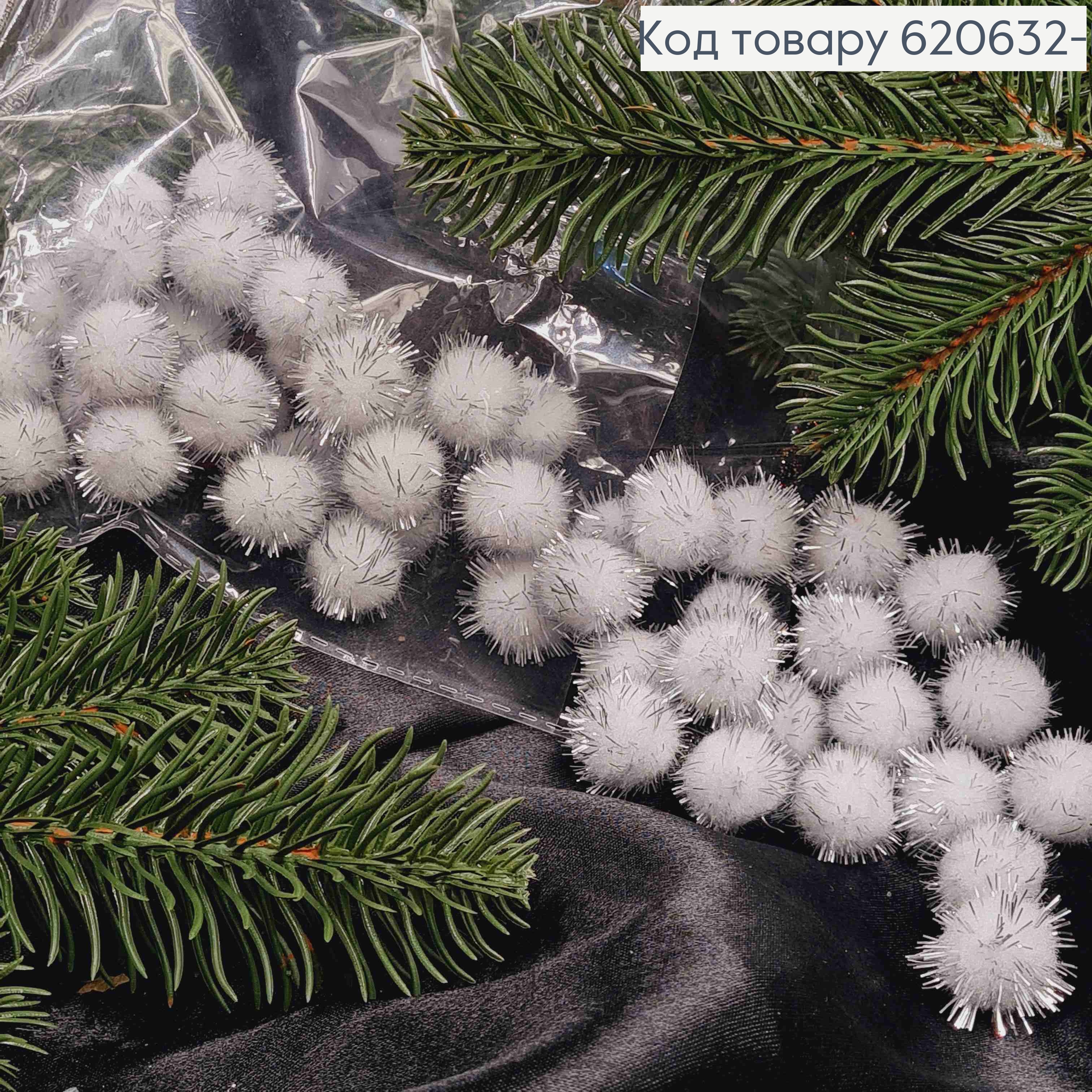 Помпоны с люрексом, 50шт/уп, БЕЛОГО цвета, 2,3см