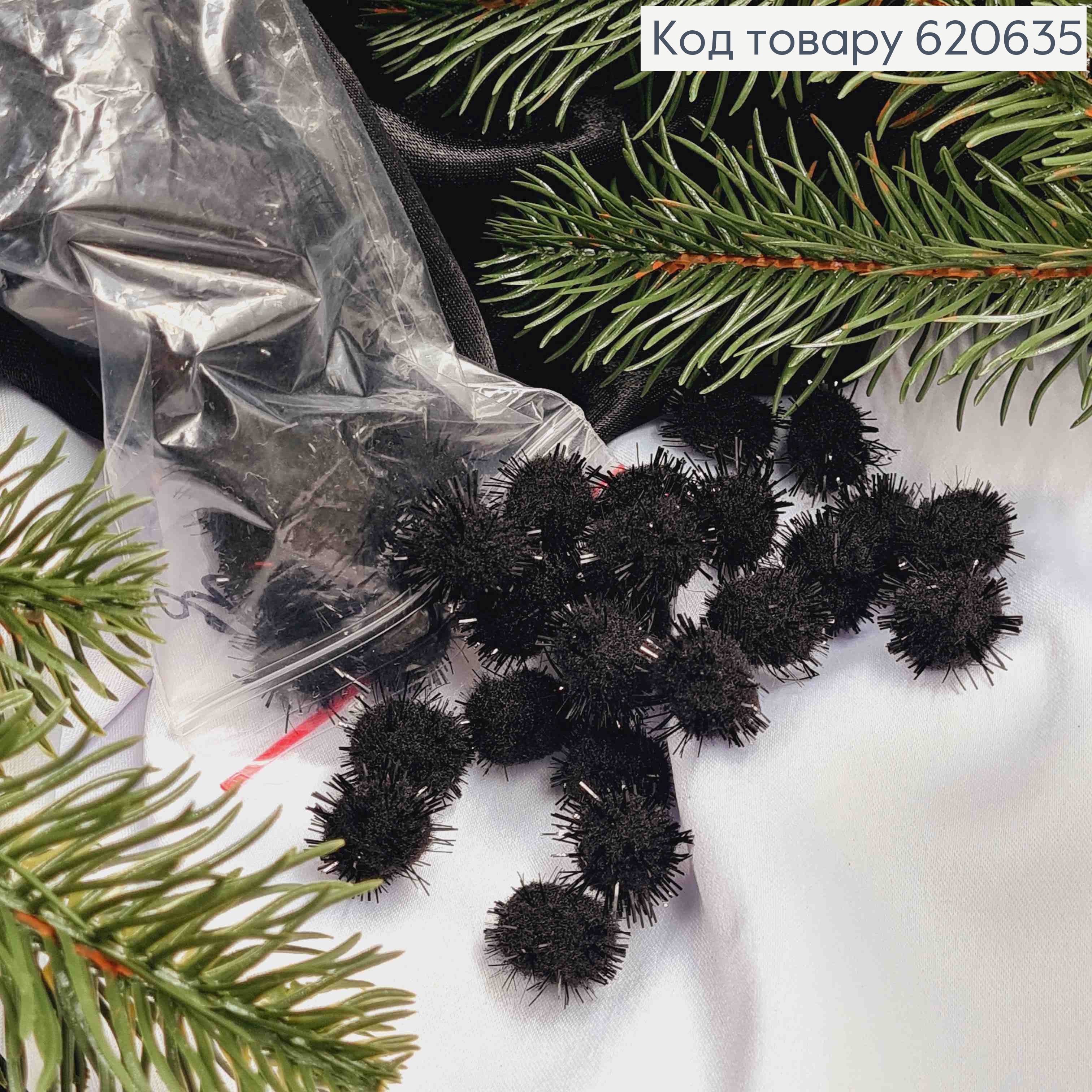 Помпоны с люрексом, 50шт/уп, ЧЕРНОГО цвета, 1,8см