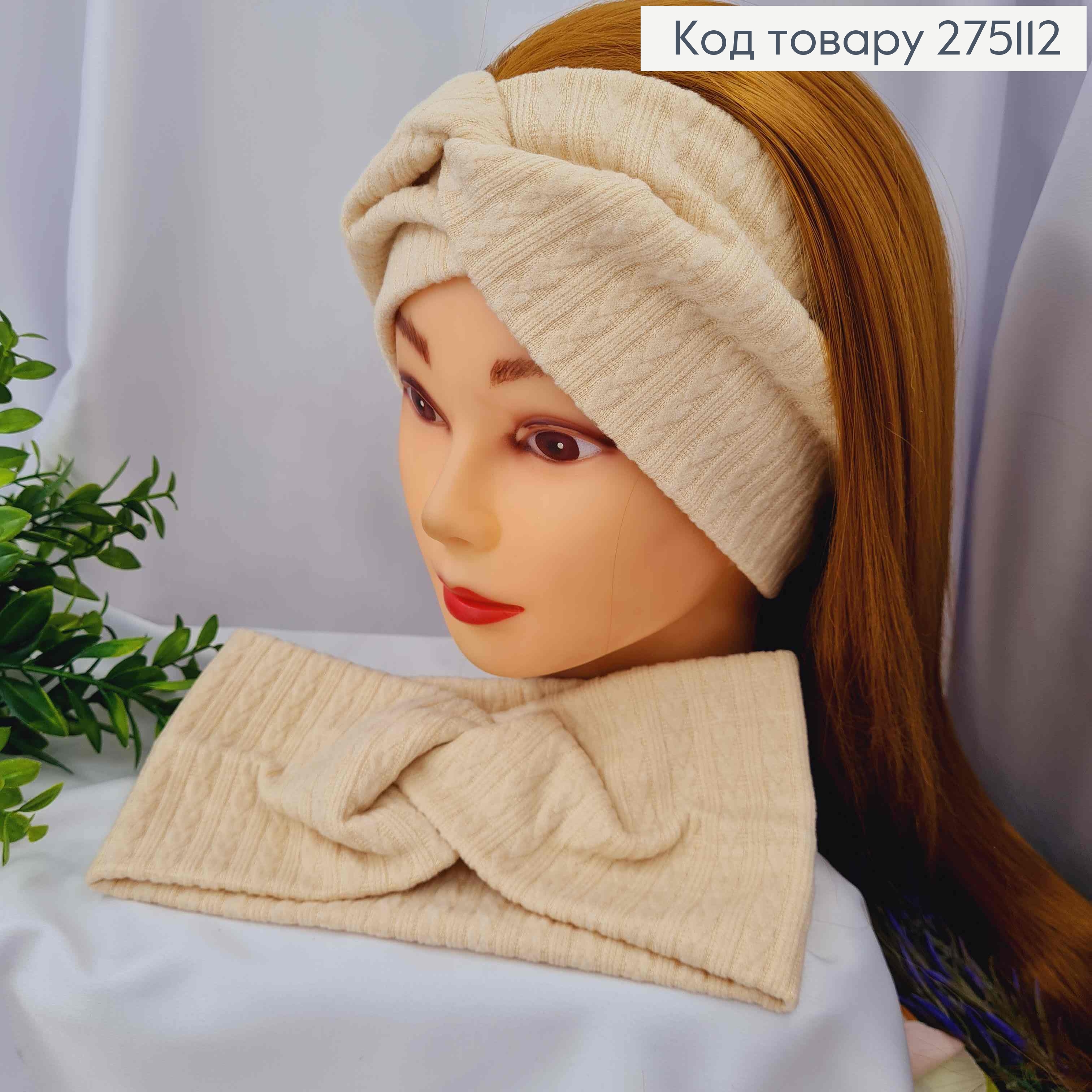 Повязка чалма, Ангора-Мягкая-Качественная, рубчик, цвета АИВОРИ, 42*12см, ручная работа, Украина. 275203 фото