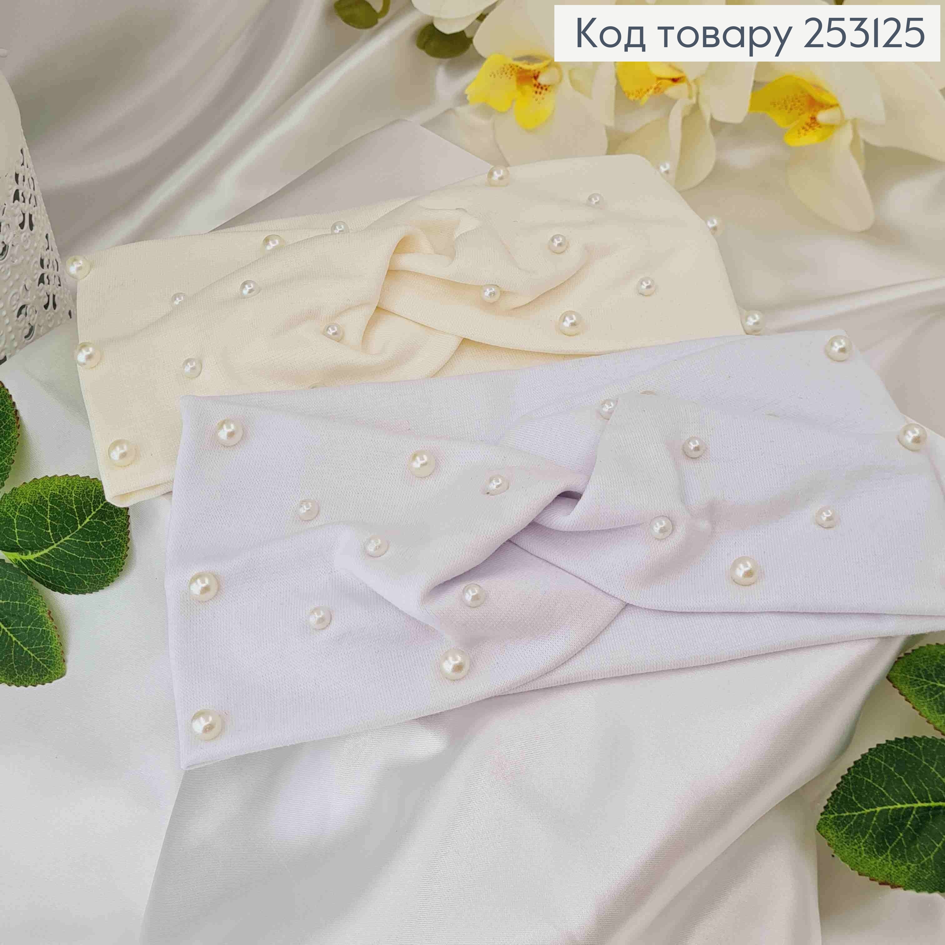 Повязка чалма, (трикотаж) с жемчужинами, молочная/белая в ассорт. 21*10,5см