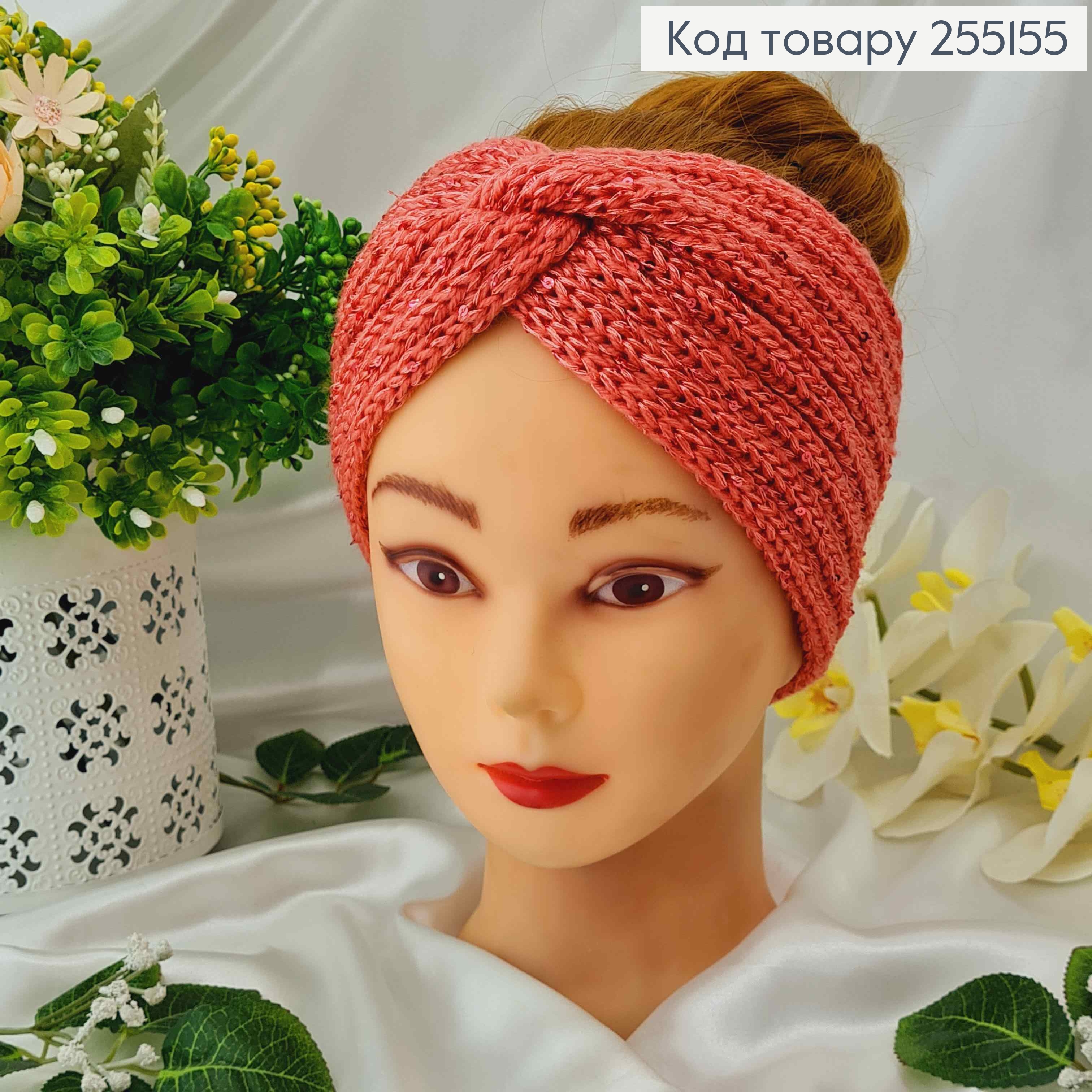 Повязка чалма, Вязаная с пайетками, 21*10 см, Розового цвета