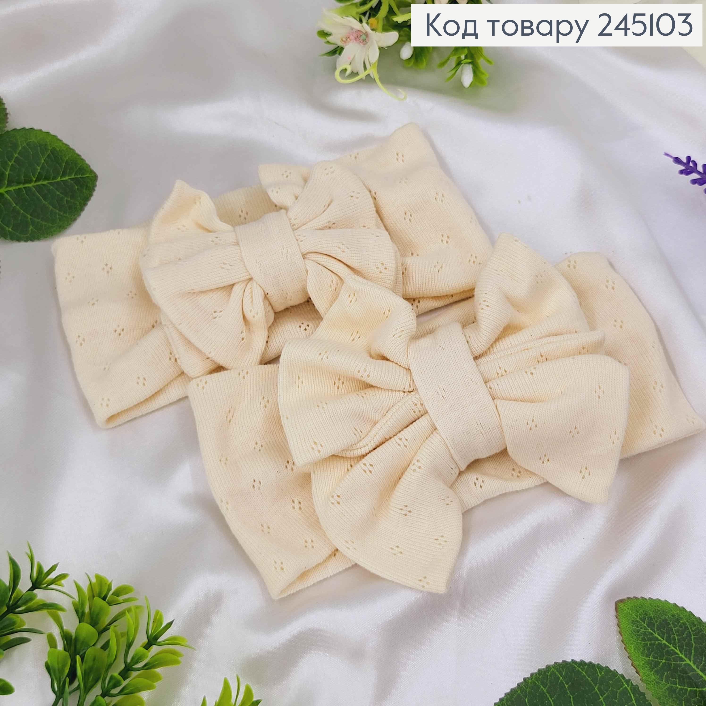 Повязка детская, трикотаж(натур. ткан.) Бант, Молочная, 15,5*7,5см, ручная работа. Украина