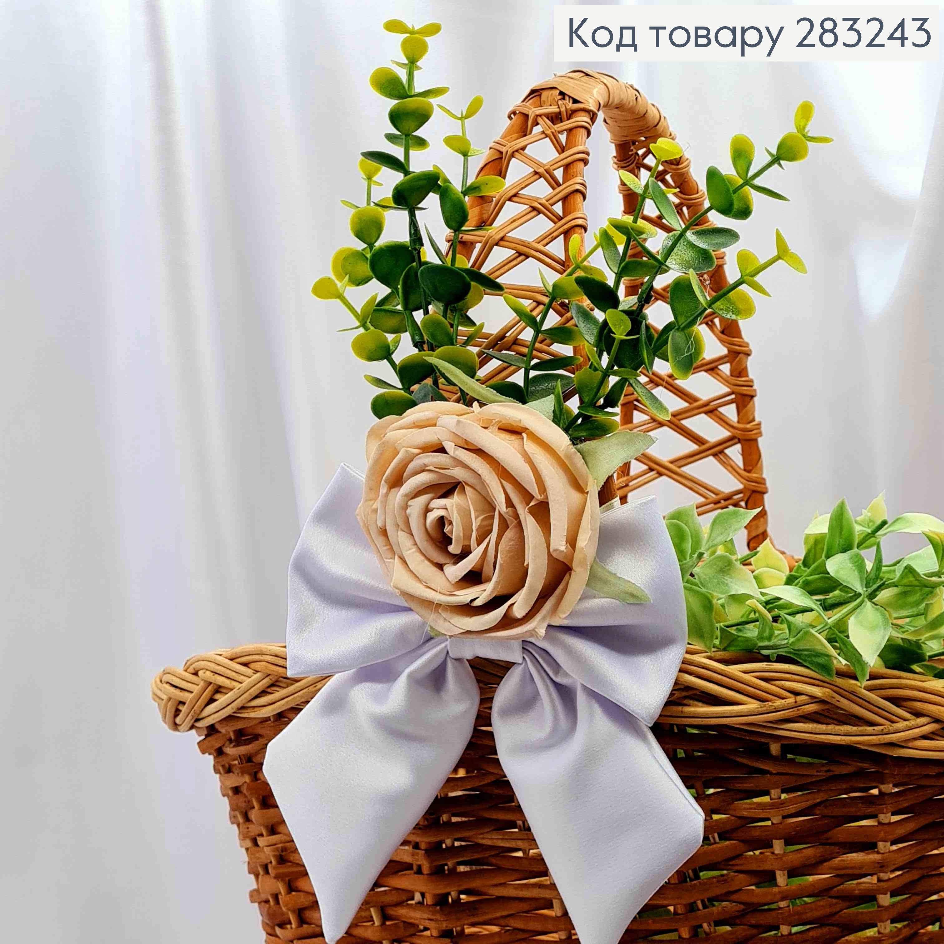Повязка для корзины КОРИЧЕСКИЙ Бант с Кремовой Розой, на завязках, размер 14*27см, Украина 283237 фото