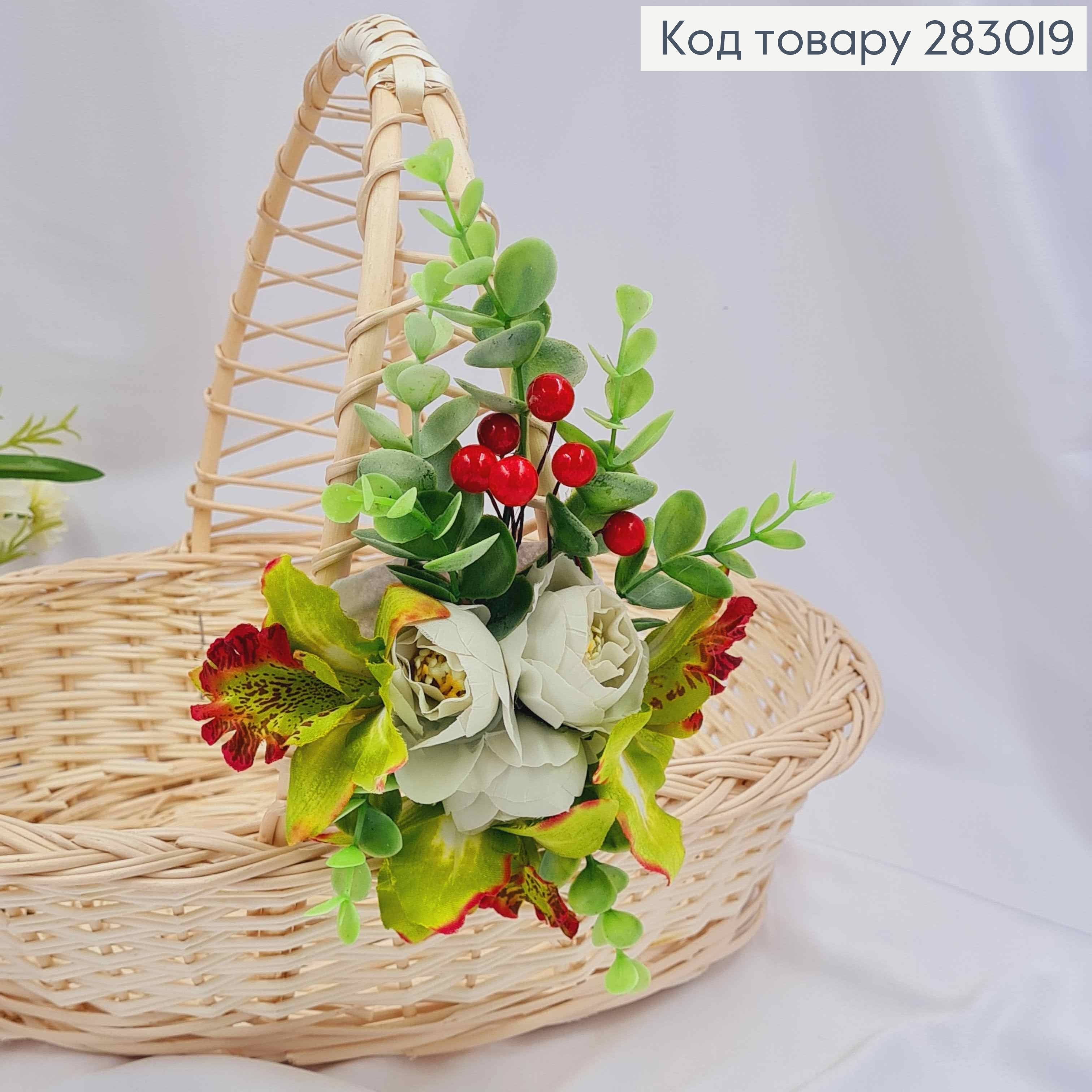 Повязка для корзины Орхидеи с розами, зеленью и красной калиной, размер 14*17см на завязках