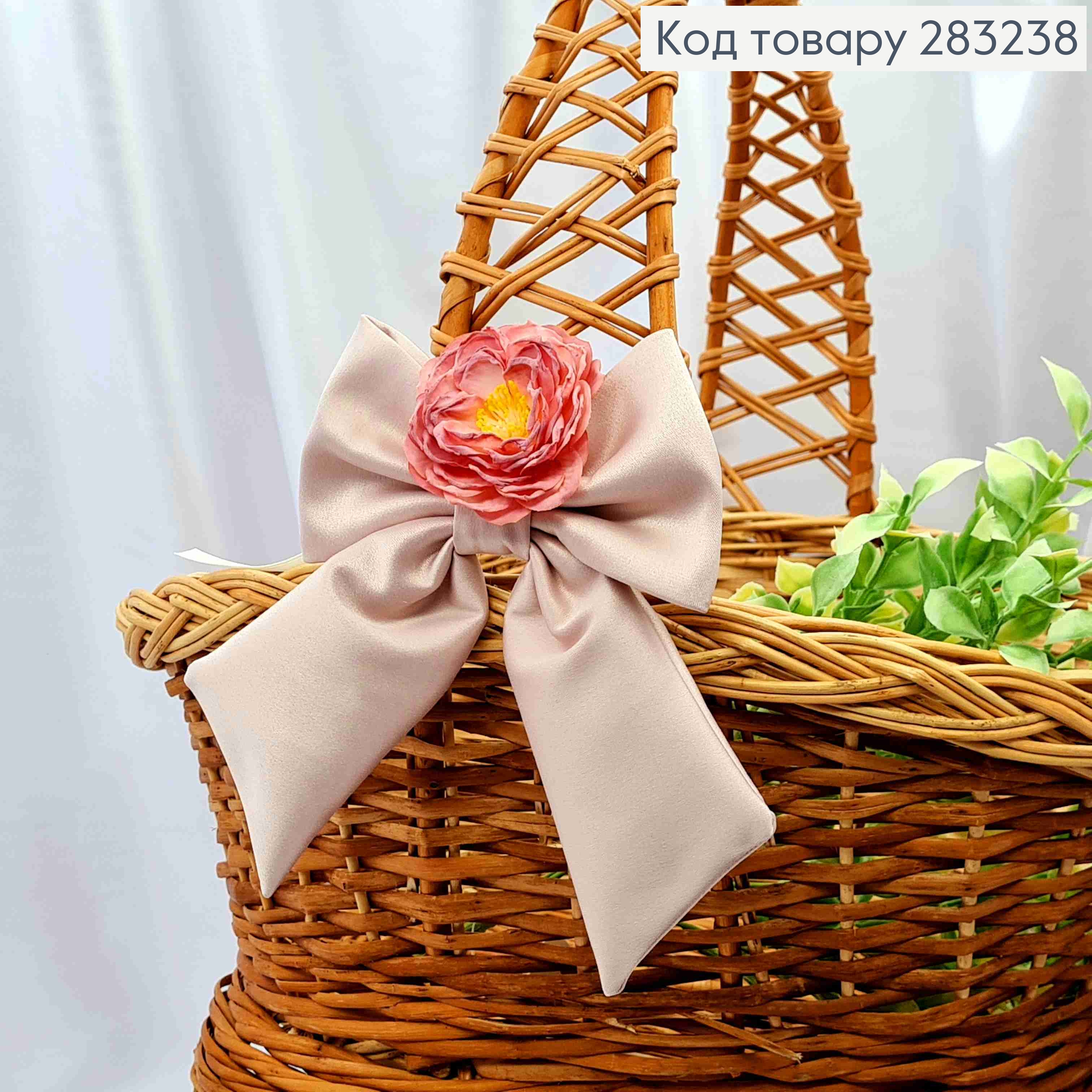 Повязка для корзины Бант цвета КАПУЧИНО с Пудровым Цветком, на завязках, размер 13*26см, Украина 283239 фото