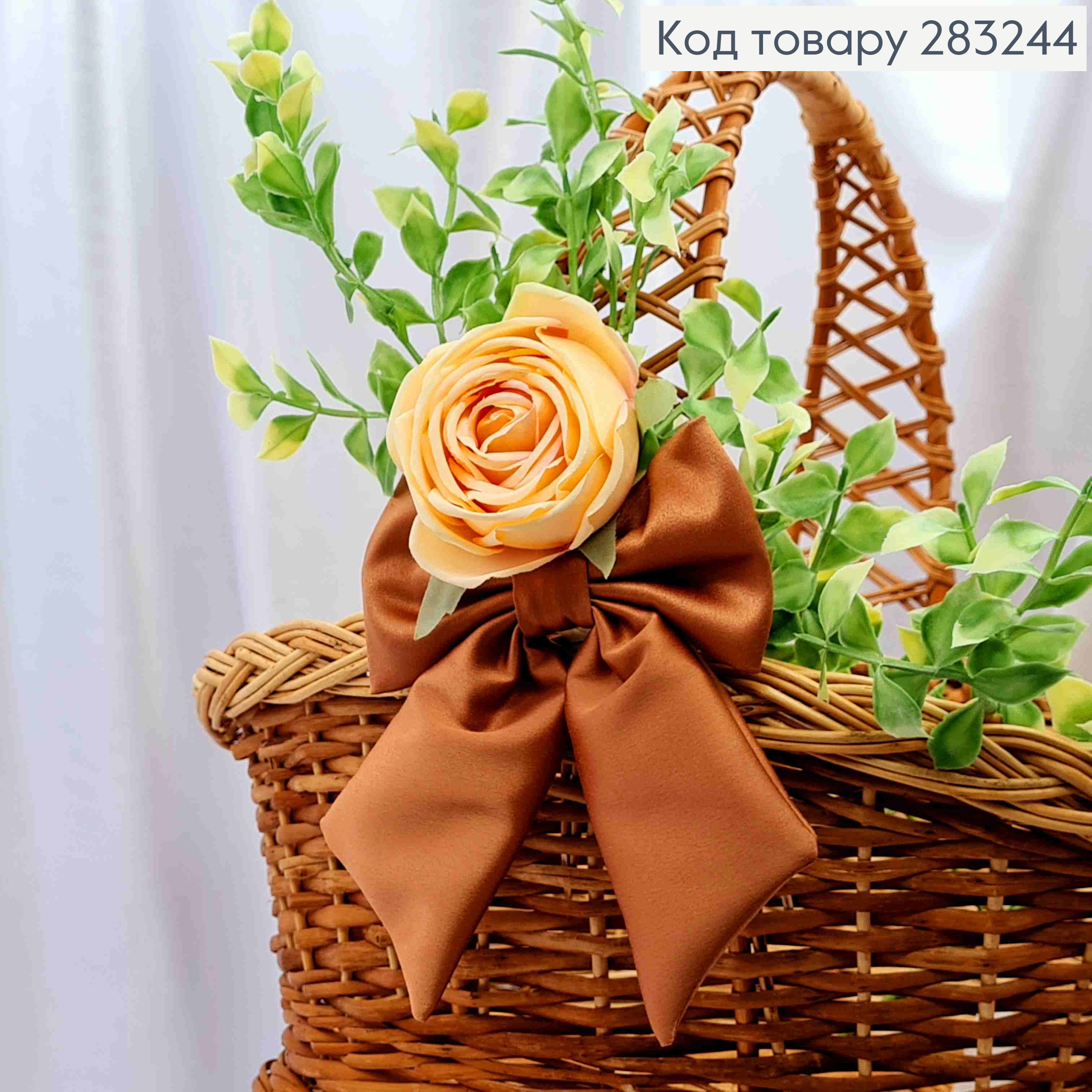 Повязка для корзины КОРИЧЕСКИЙ Бант с Кремовой Розой, на завязках, размер 14*27см, Украина 283237 фото