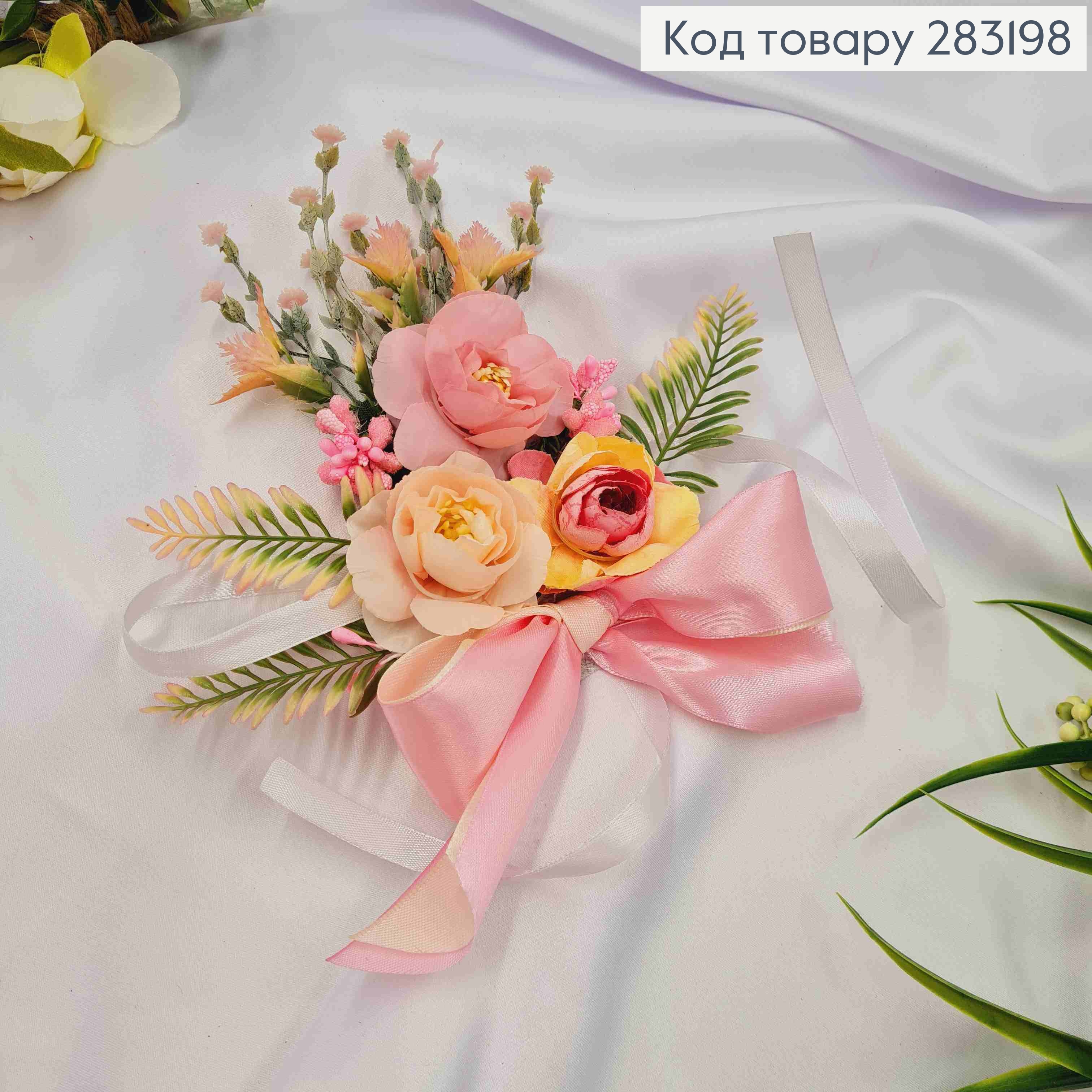 Повязка для корзины Бант цвета КАПУЧИНО с Пудровым Цветком, на завязках, размер 13*26см, Украина 283239 фото