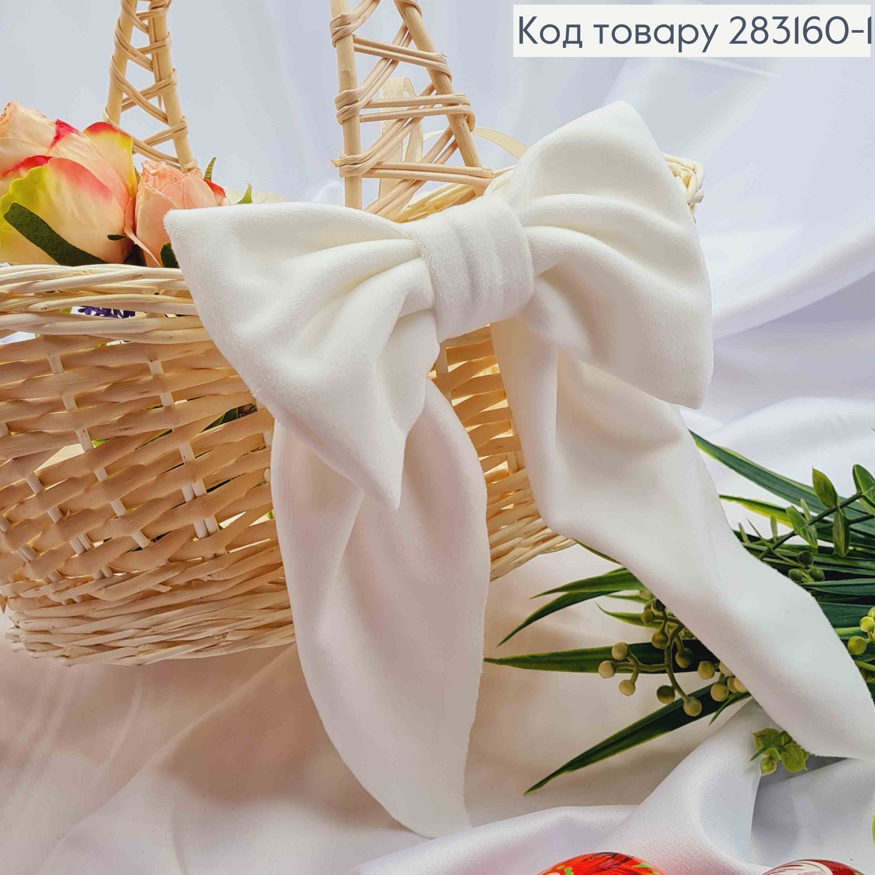 Повязка для корзины велюровая Бантик Белого цвета на завязках, 14*8см, ручная работа, Украина.