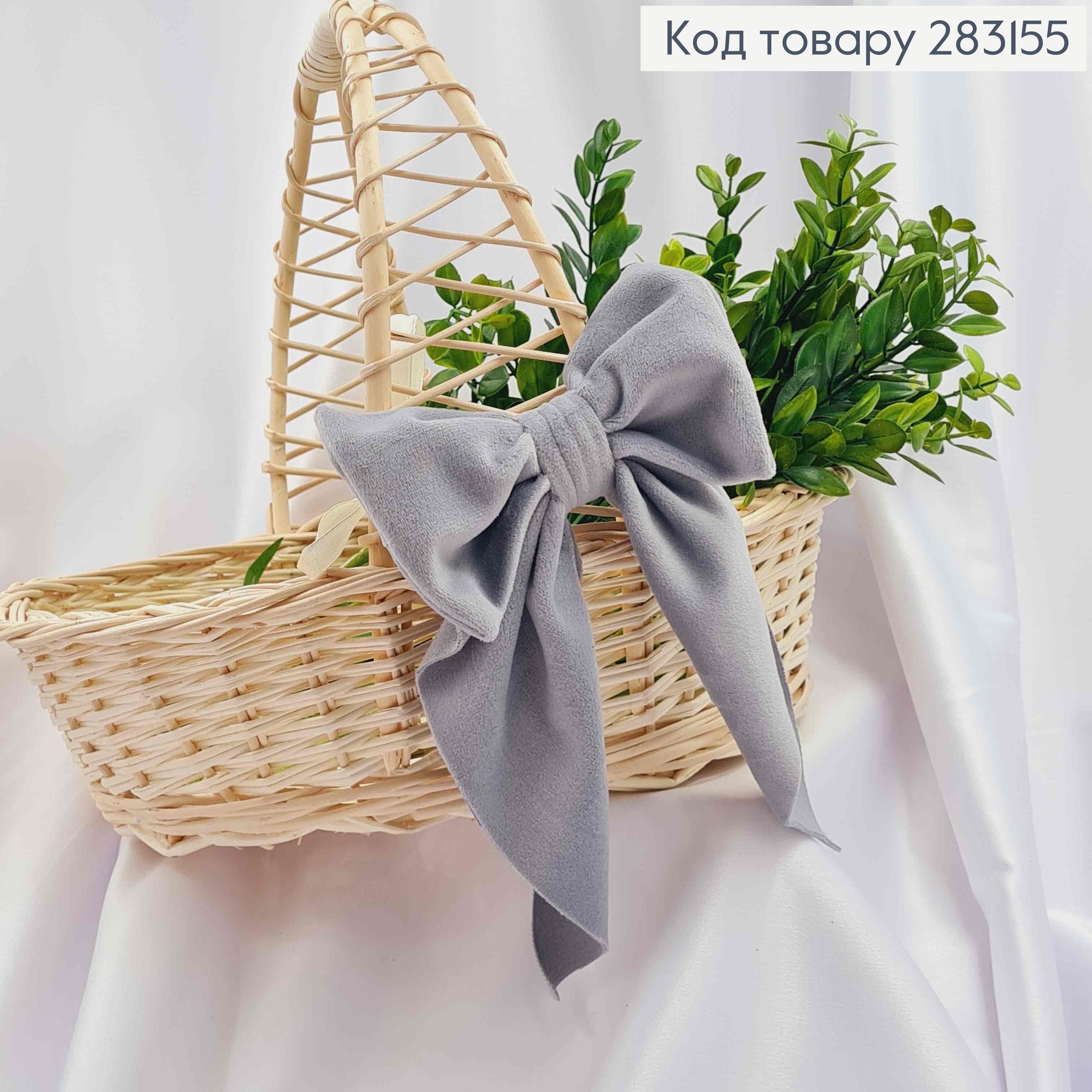 Повязка для корзины велюровый Бантик Серого цвета на завязках, 14*8см, ручная работа, Украина