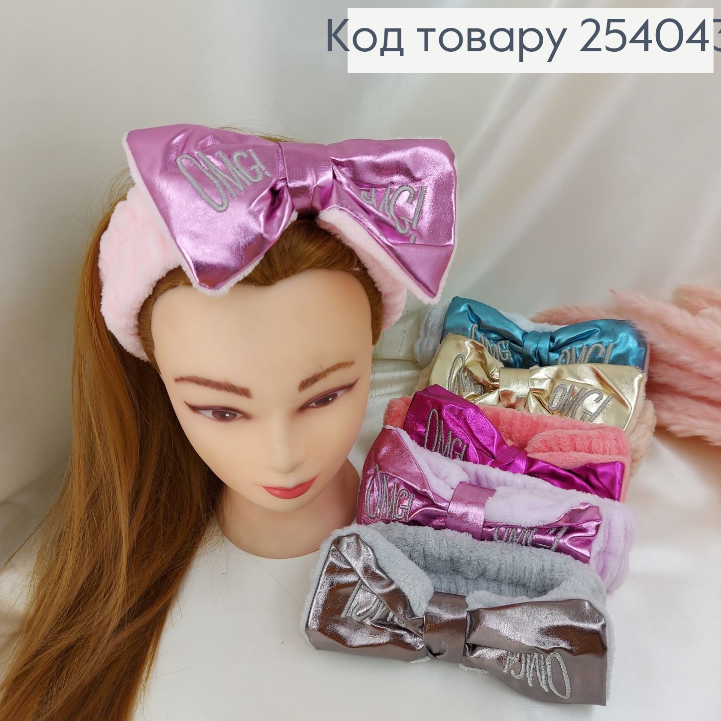 Повязка махровая OMG косметическая с бантиком блеск в ассор.