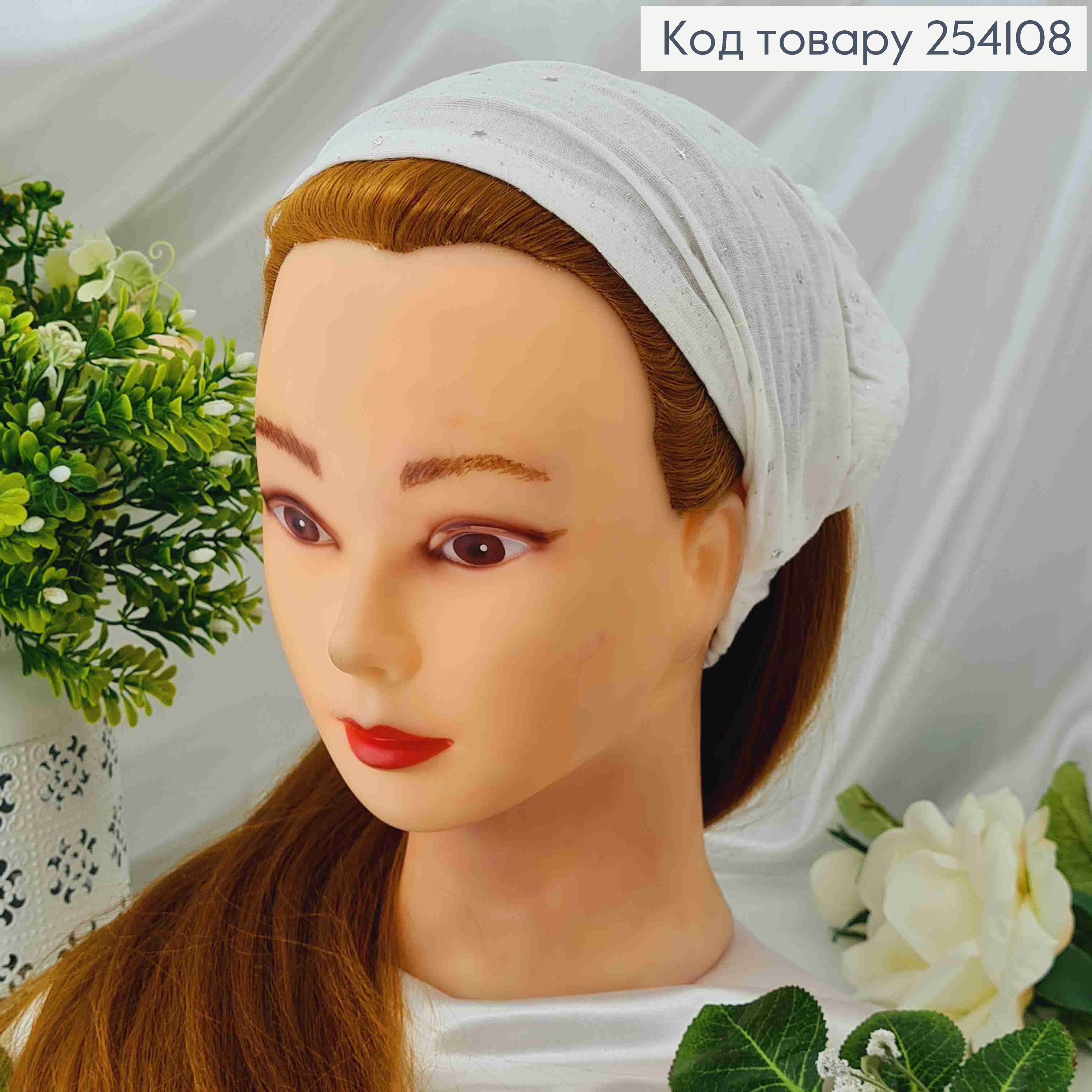 Повязка-платок на резинке, (натур. ткань) Белого цвета с камнями-звездочками.(ручная работа)