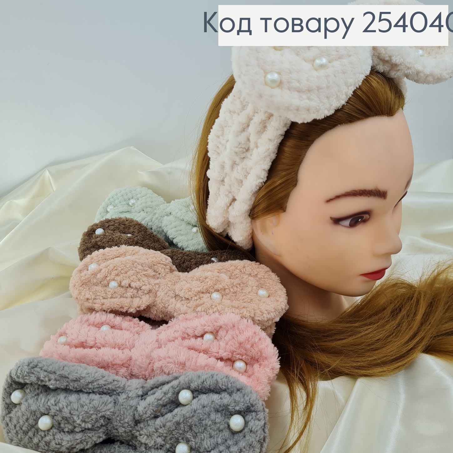 Повязка махровая косметическая с бантиком и жемчужинами в ассорт.