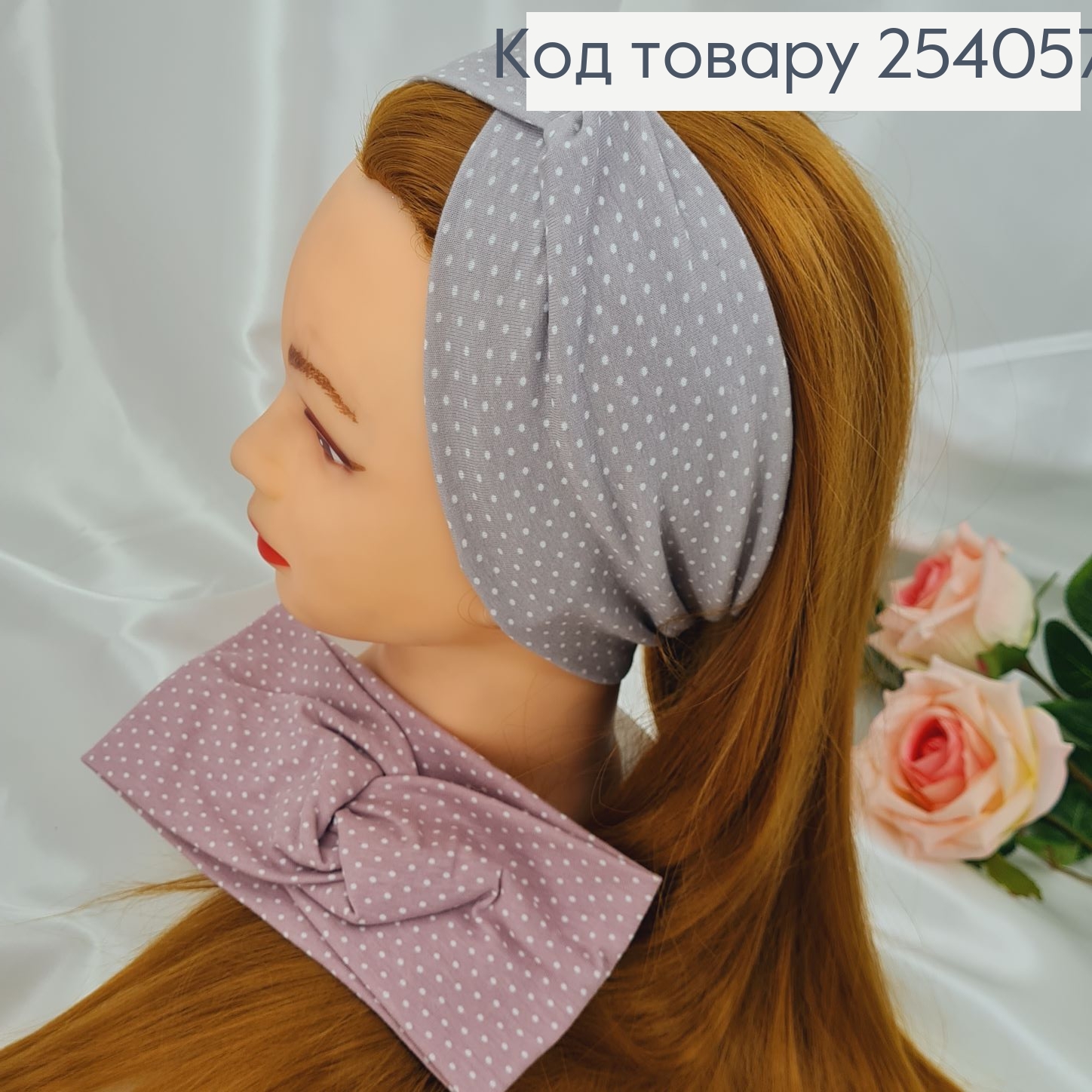 Повязка чалма, "кролик", зигзаг, СВЕТЛО-СЕРОГО цвета, 42*11см, ручная работа, Украина. 275210 фото