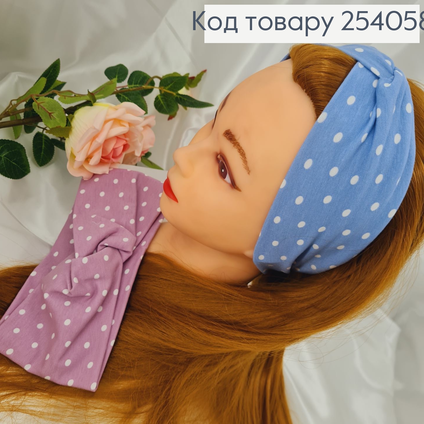 Повязка трикотаж (натуральный) Чалма Горох Лилова 9*21см, ручная работа, Украина