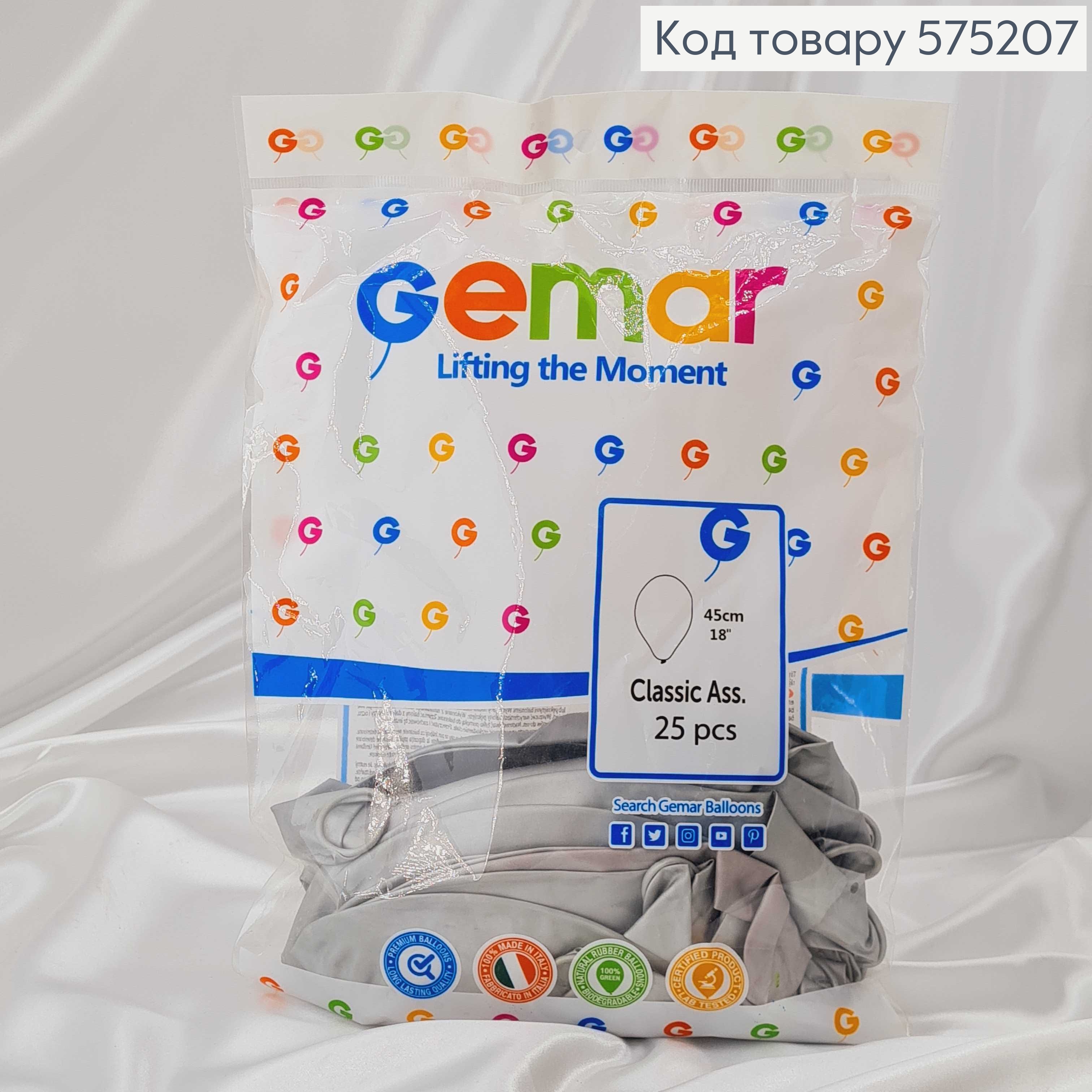 Воздушные шары латексные 18'' Gemar Среребряные (45см), 25шт/уп 575204 фото