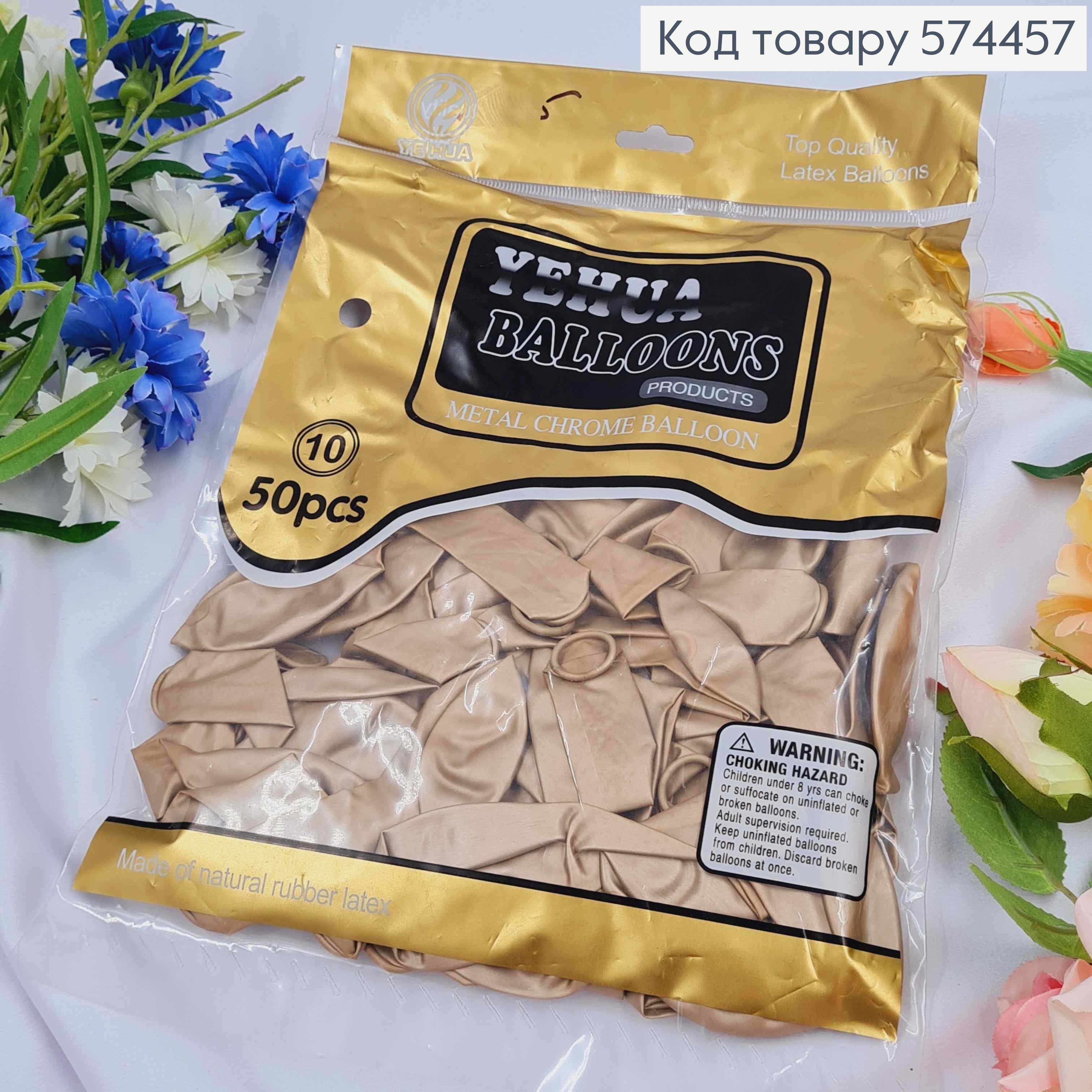 Воздушные шары латексные, Бронзовый хром 10", YE HUA, 50шт/уп 574458 фото