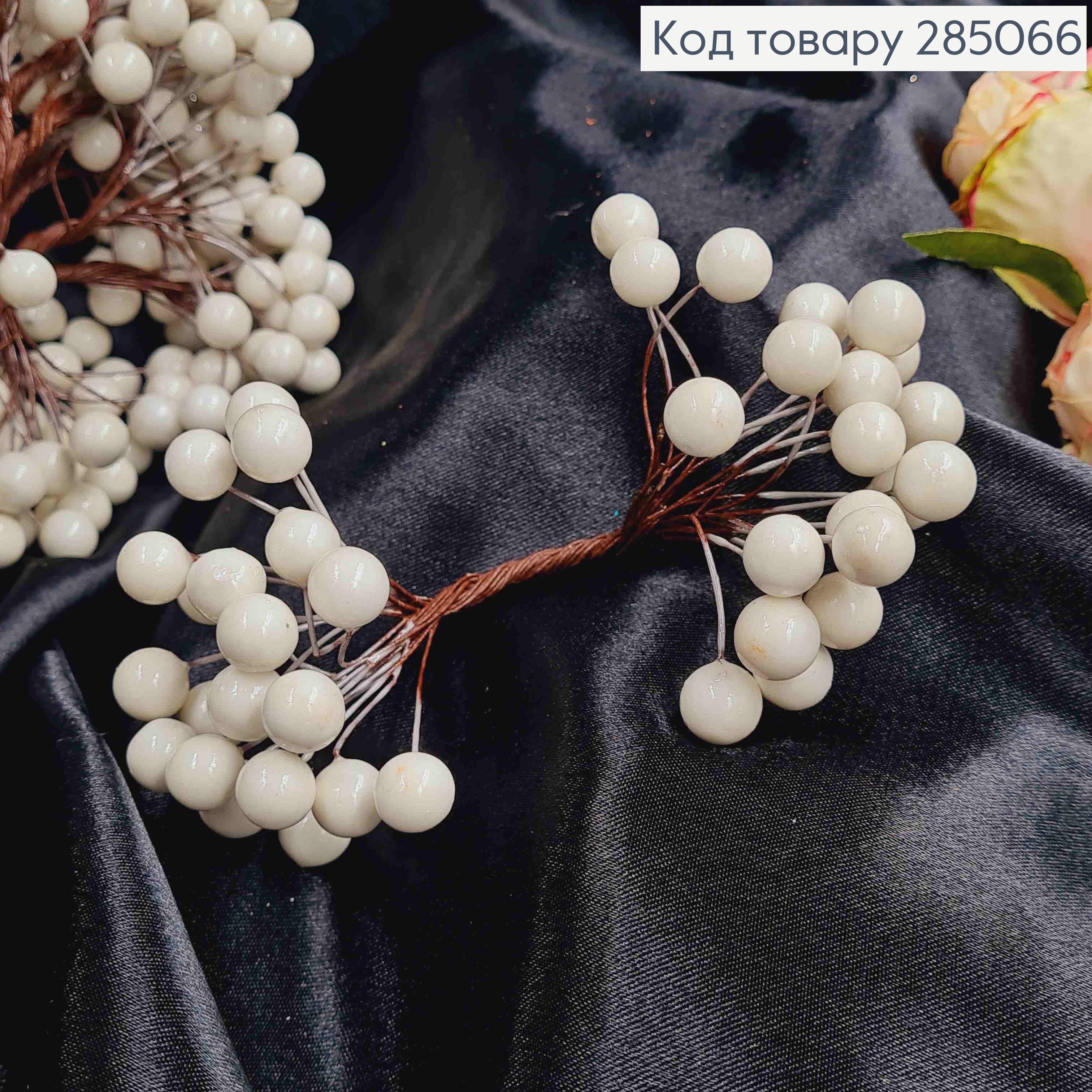 Ягодки КАЛИНЫ, МОЛОЧНОГО цвета (20шт) на металлической проволоке, 1,5см+6,5см 620763 фото