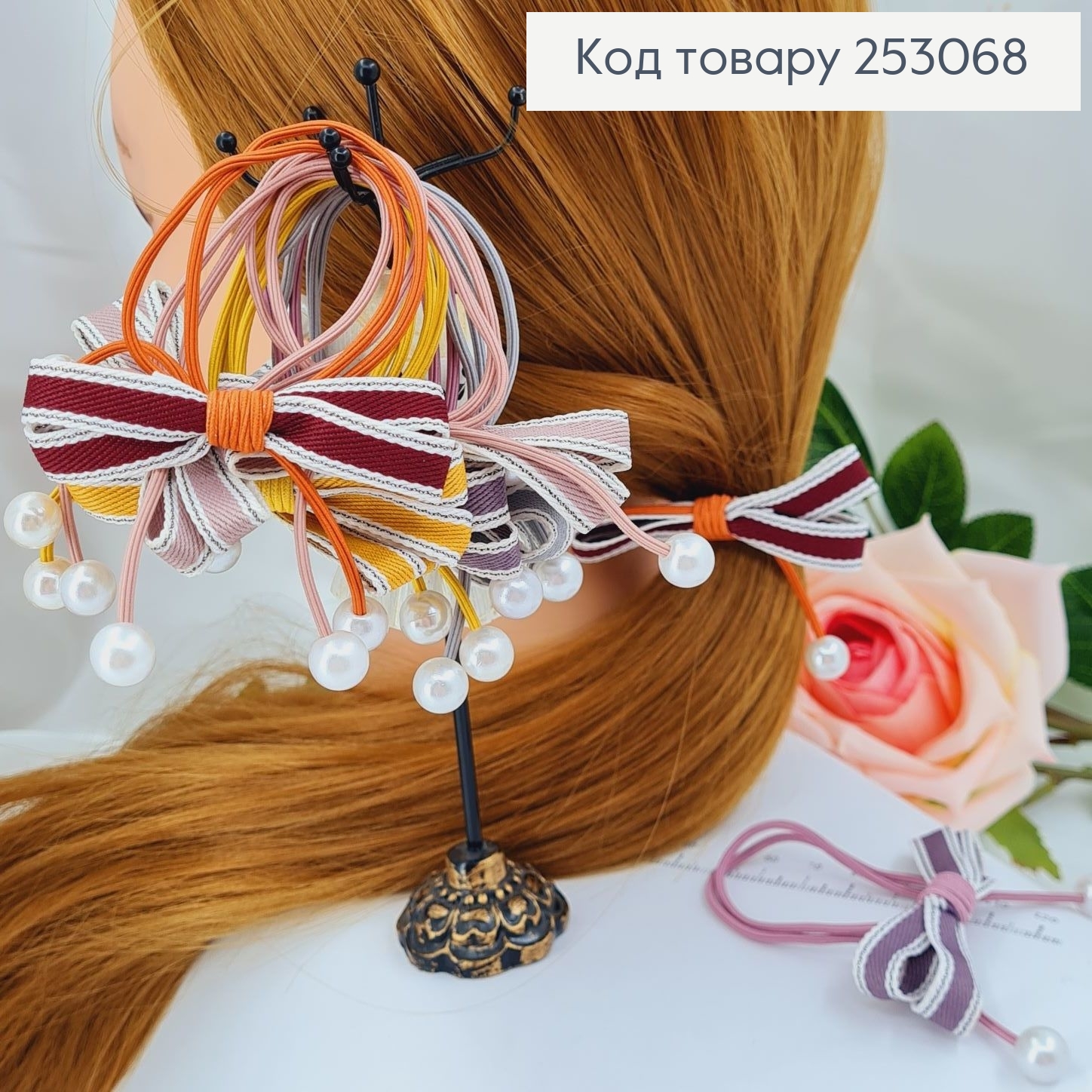 Резинка шнурок с Бантиком, бусиной и камнем, Цвета в ассортименте, резинка 5,5см, бант 3,5см 253232 фото