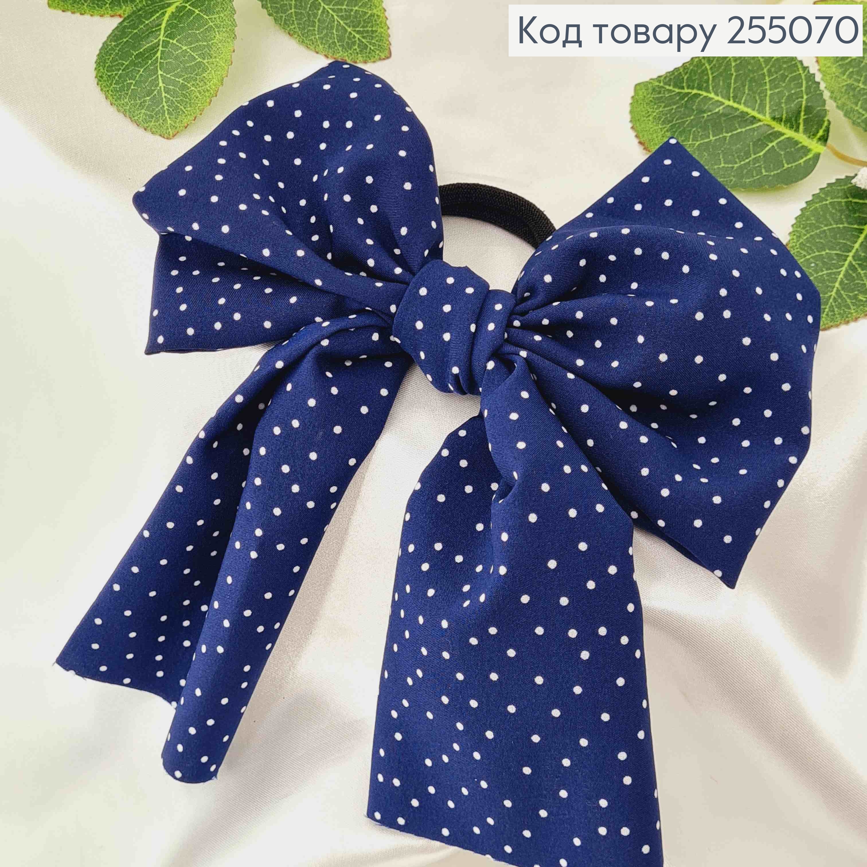 Резинка 5 см, Твилли бант синего цвета в горошек, 15*12см.