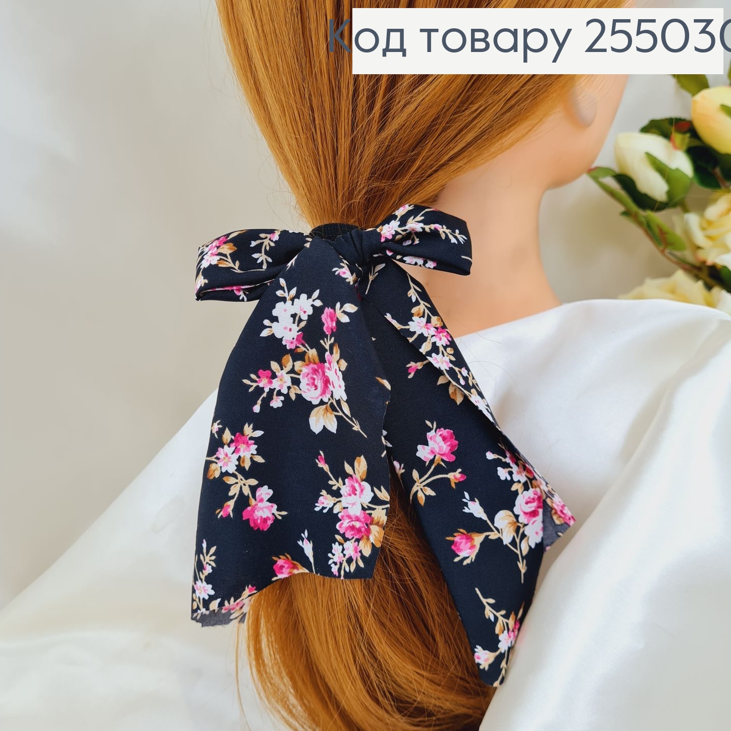 Резинка 5см, Твилли Бант 9*15см, Черная Цветы, (ручная работа,Украина)