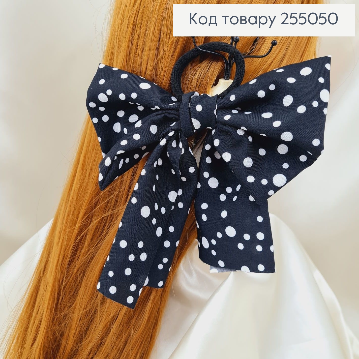 Резинка 5см, Твилли Бант Черный Горох 16*15см, (ручная работа,Украина)