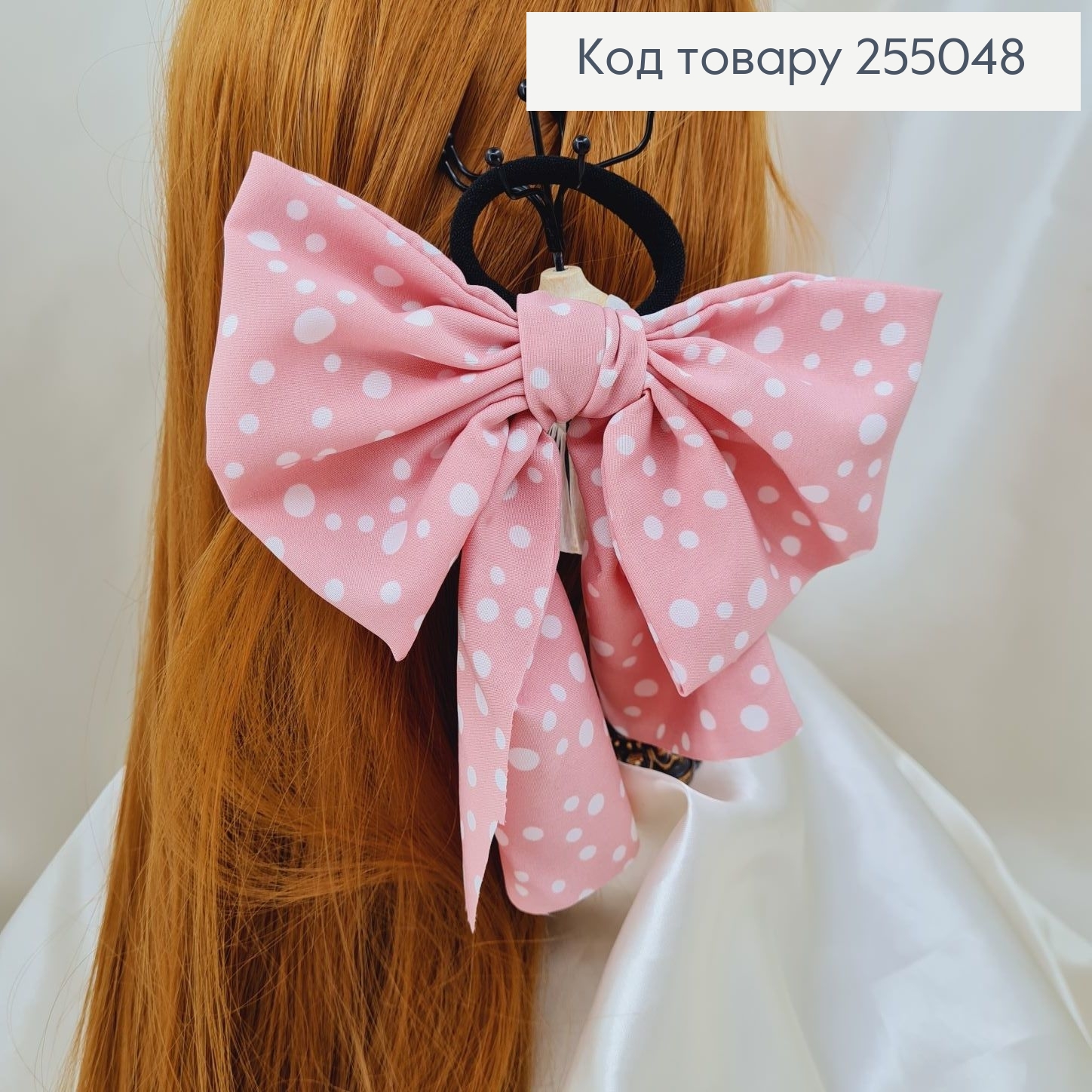 Резинка 5см, Твилли, Бант розовый Горох 16*15см (ручная работа, Украина)