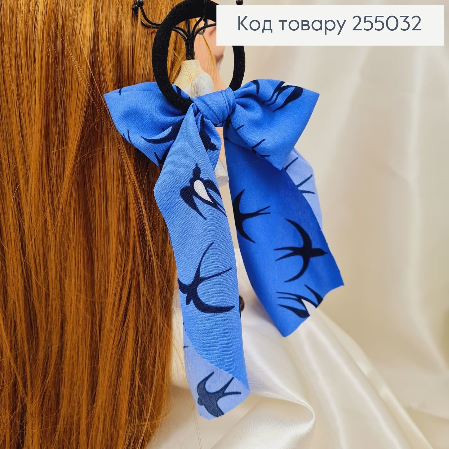 Резинка 5см, Твилли Бант Синий Ласточки 9*15см (ручная работа, Украина)