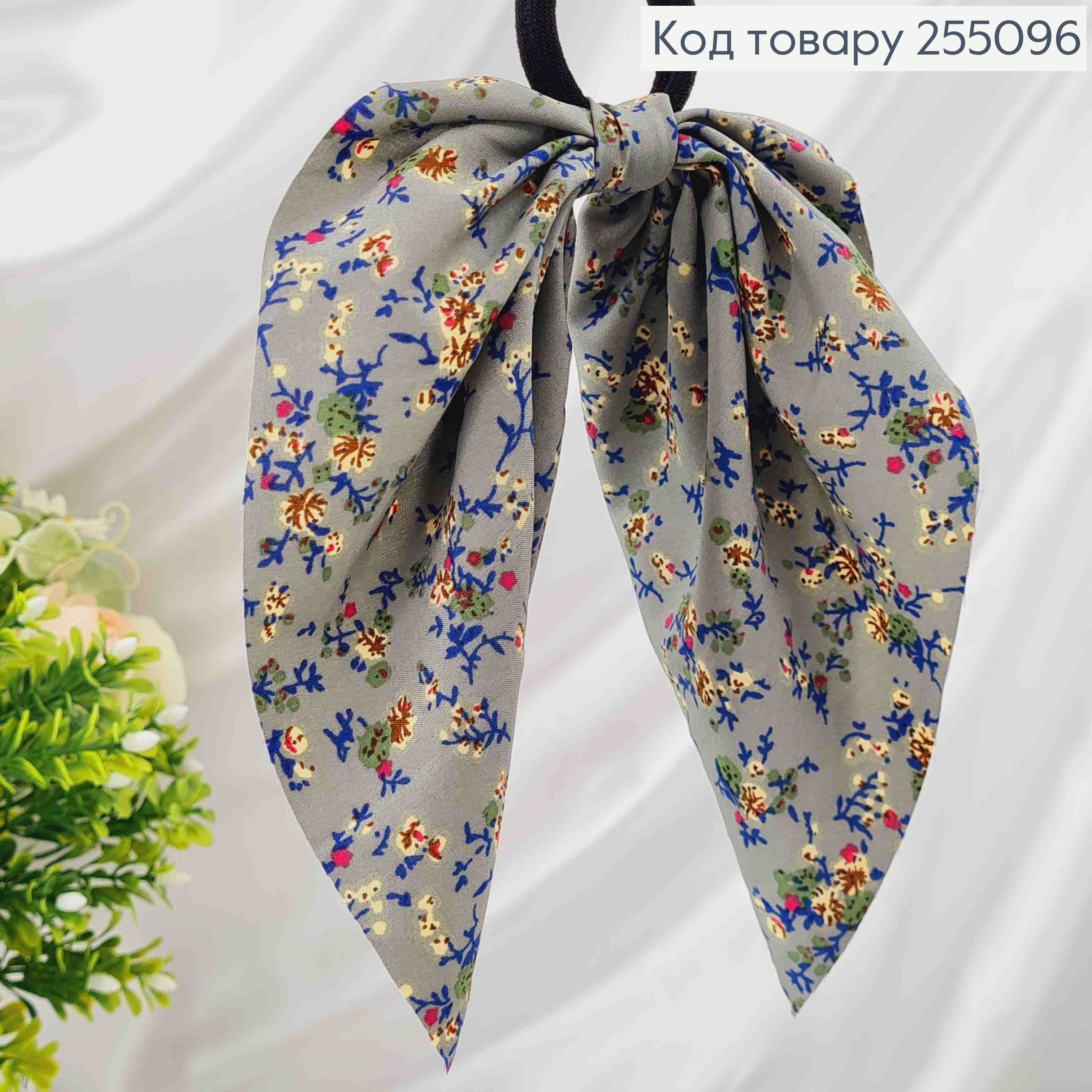 Резинка 5см, Твилли с бантиком, Серого цвета, с цветочным принтом, дл.16см
