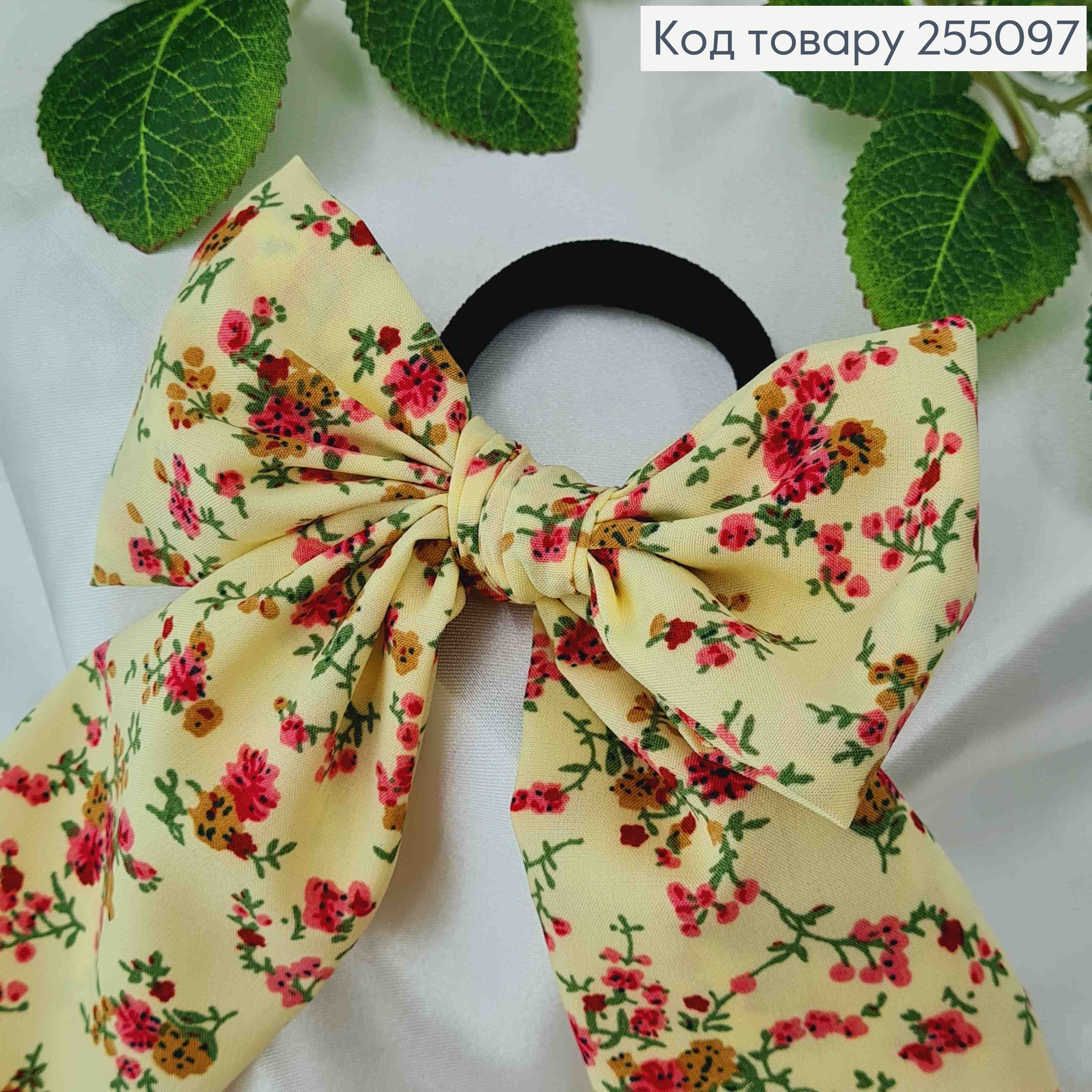 Резинка 5см, Твилли с бантиком, Желтого цвета, с цветочным принтом, дл.