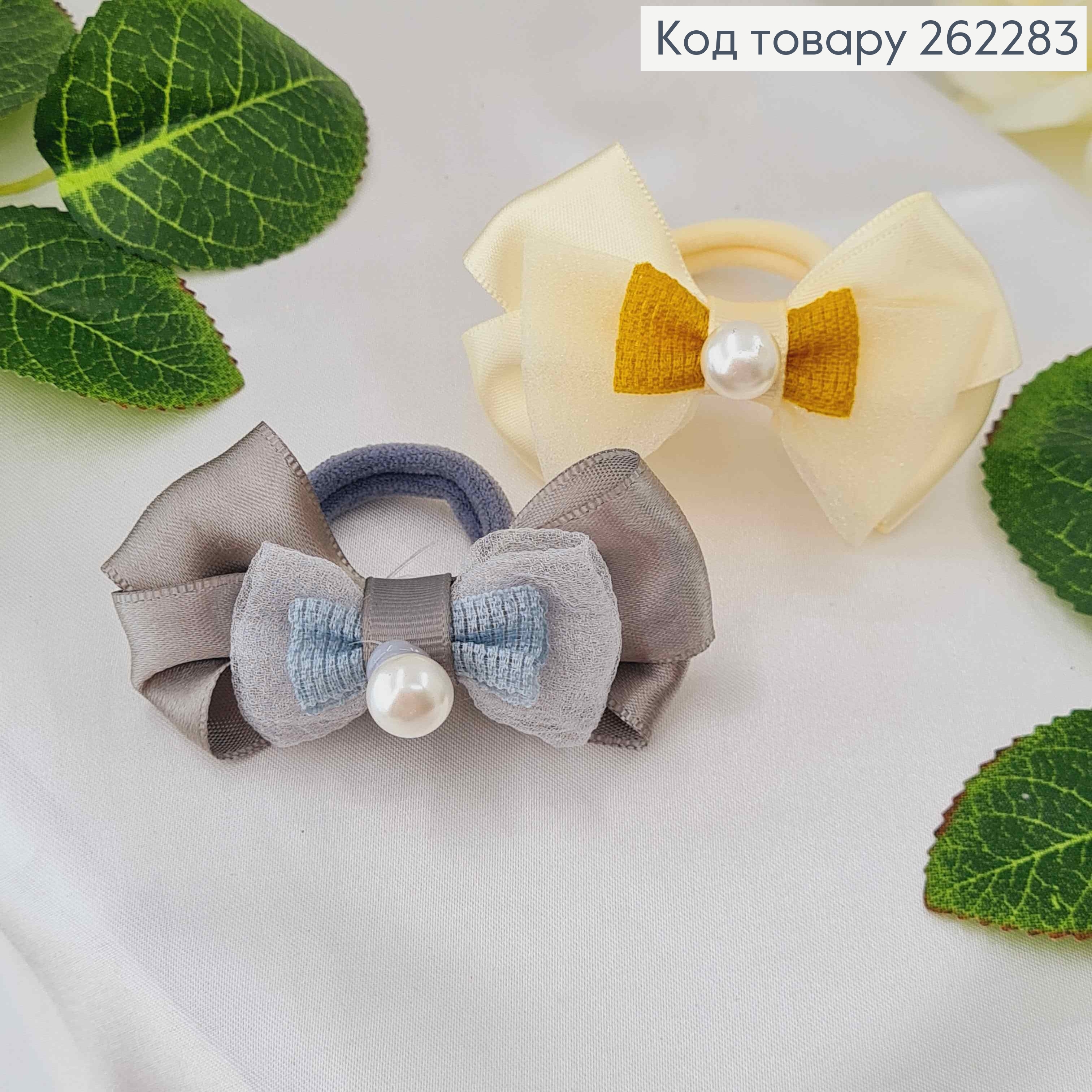 Резинка Бант двойной, атласный с фатином и жемчужиной, 7см, цвета в ассорт.