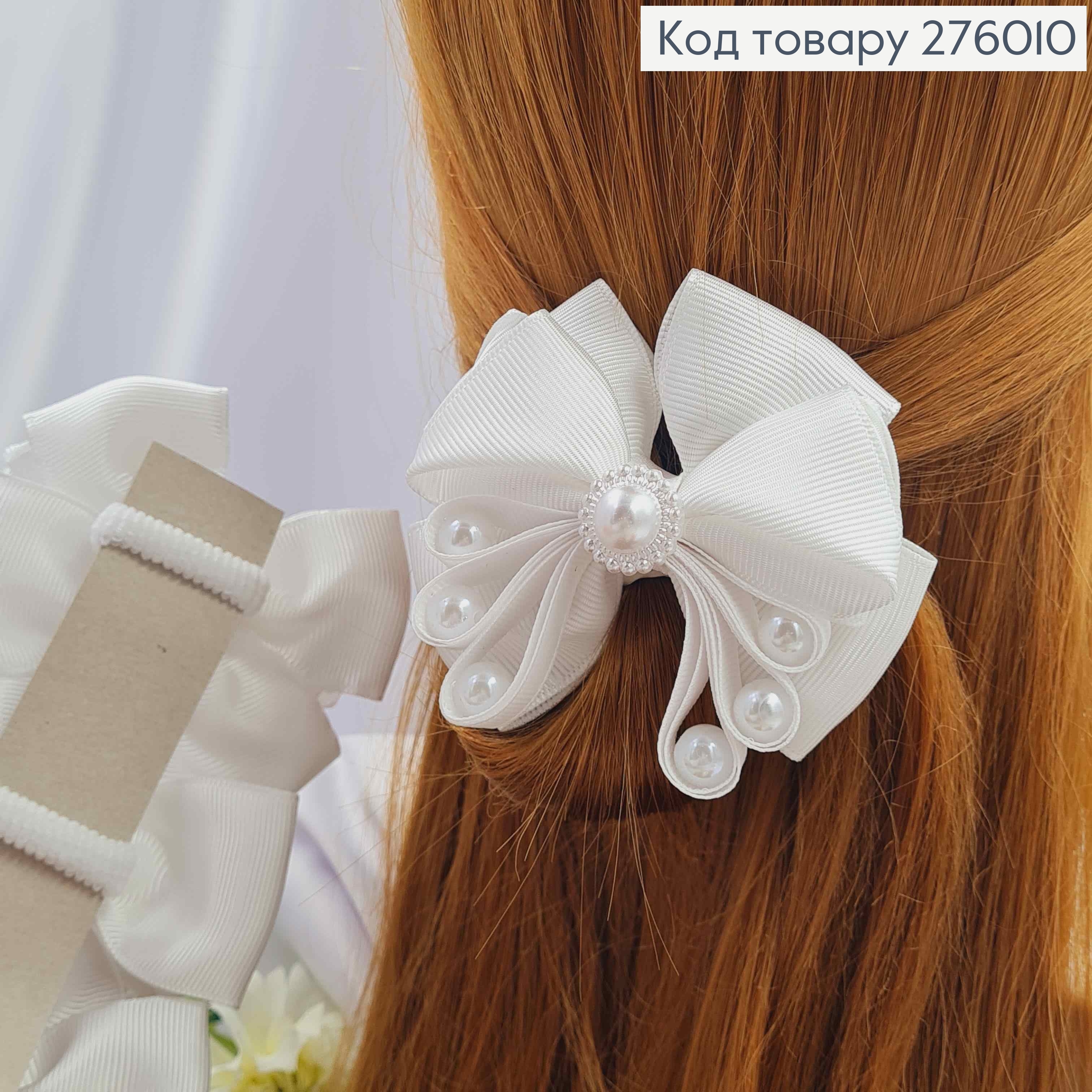 Бант атласный с бусинками, БЕЛЫЙ на резинке, размер 12*20см, ручная работа, Украина. 276166 фото