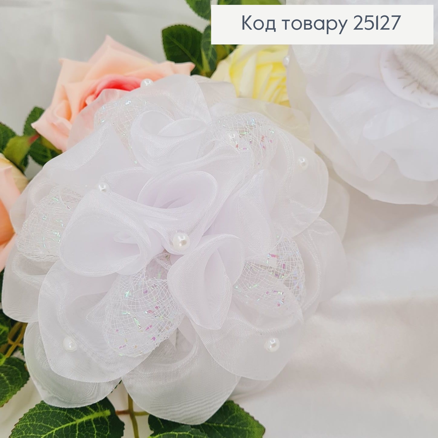 Резинка Бант большой 14см обьемный белый с бусинками , ручная робота Украина